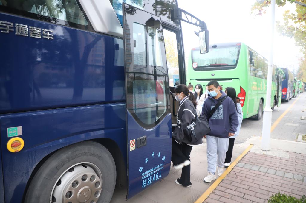 疫情当前,学校高度重视此次考试,本着“以学生为本”的理念,每个区域安排中层干部带队、每辆车都安排老师随行,确保学生乘车安全。同时,跟车教师对各考生开展防疫知识普及、提醒佩戴口罩、对应的考点核验及突发情况的应急处置等教育工作。考试结束后,考生随送考车辆全程做好防护安全返回学校。