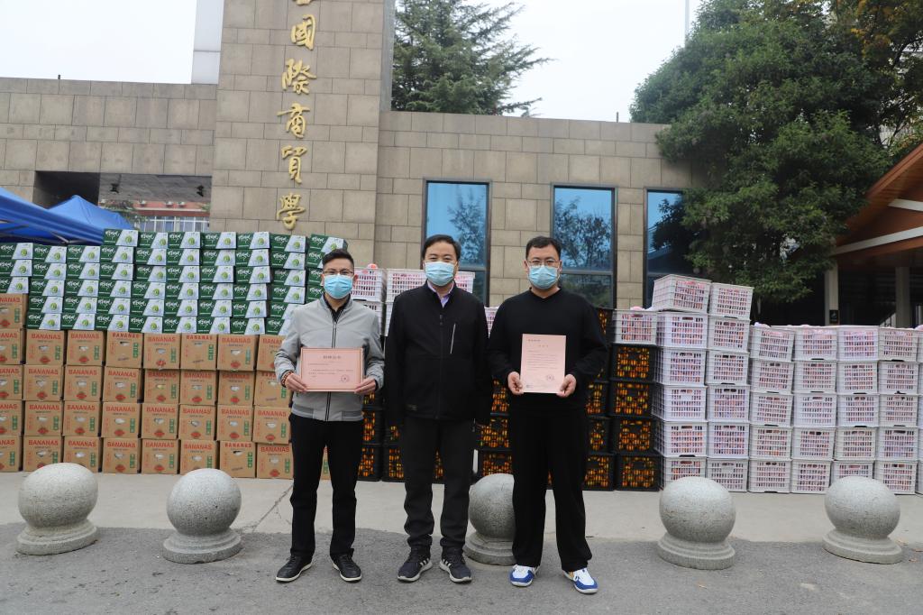 本网讯:“春风育桃李,秋果谢恩情”。10月29日,在疫情防控封校期间,学校校友会为母校捐赠水果物资6700斤,展现毕业学子对母校的怀念和热爱,也在用实际行动来助力母校疫情防控工作。