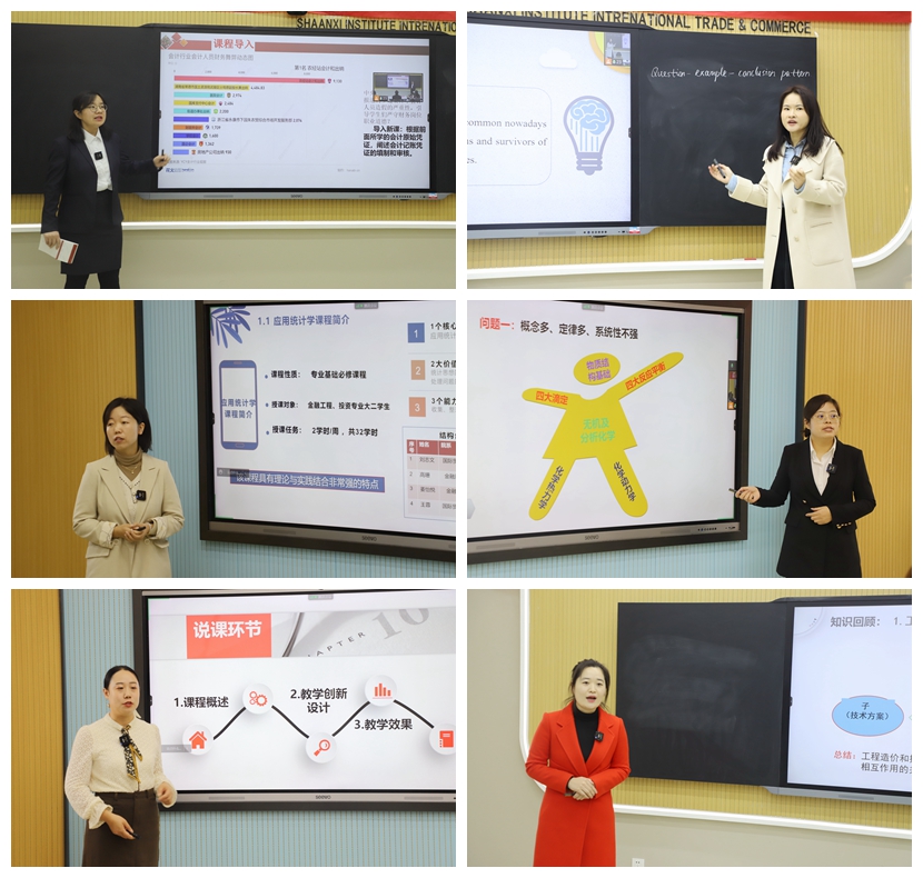 11月19日在7J209、210教室进行现场展示,展示采用线上线下相结合的方式进行。出席本次决赛的有副校长杨子元、教务处相关负责人,担任本次决赛的评审专家有陕西中医药大学王瑞辉教授、西安外国语大学庞闻教授、陕西科技大学林营教授、西安邮电大学王曙燕教授、陕西中医药大学卫昊教授、我校课堂教学创新大赛省赛二等奖获得者王艳娇老师、我校青年教师讲课大赛省赛三等奖获得者任恒妮老师、刘勤燕老师和高洁老师。本次比赛由超星技术团队进行现场直播,全校教师线上观看学习。比赛由教务处相关负责人主持。