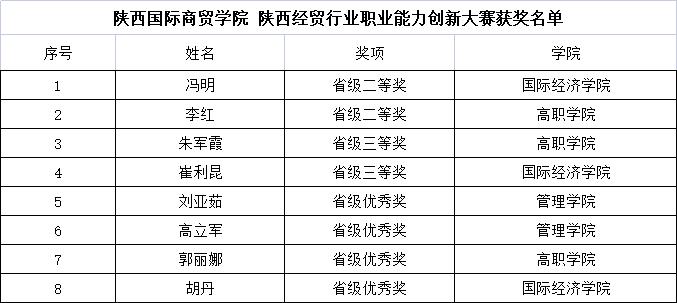本网讯:近日,由陕西省科教文卫体工会、中国国际贸易促进委员会商业行业委员会主办,西安翻译学院承办的2022年陕西省经贸行业职业能力创新大赛结果出炉,经激烈角逐,我校2名教师荣获二等奖、2名教师荣获三等奖、4名教师荣获优秀奖;同时,我校获评优秀组织奖。