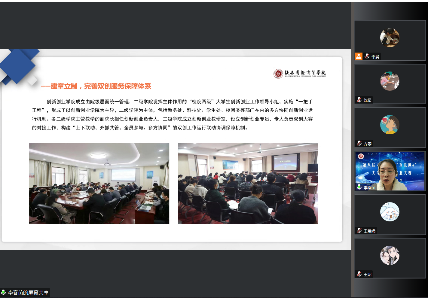 本网讯:为总结参赛经验,以赛促学,以赛促教,以赛促创,不断推进学校创新创业教育深度改革,积极探索人才培养新模式,为备战第九届中国国际“互联网+”大赛打好坚实基础。我校创新创业学院适时而动、反思复盘,于2023年2月12日上午组织召开第八届中国国际“互联网+”大学生创新创业大赛项目总结与复盘会,邀请万学教育资深企业培训导师、全国高校创业就业导师李鑫教授作为嘉宾为线上师生培训指导。