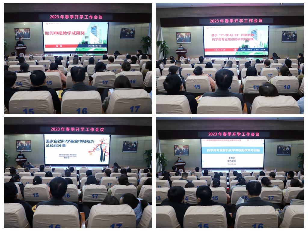 教学成果经验分享环节,冯明以《如何申报教学成果奖》,王飞娟以《基于“产-学-研-创”四融合的药学类专业建设的研究与实践》,黄壮壮以《国家自然科学基金申报技巧及经验分享》,王艳娇以《药学类专业有机化学课程的改革与创新》,张杰以《以赛促教——思政课大练兵备赛经验分享》,李春苗以《科创筑梦 实践先行—创新创业教学成果驱动大赛质量提升》,郑敏杰以《“三结合五赋能”视域下学生第二课堂建设的思考》,白雪以《陪伴中领航,尽责中圆梦 做新时代辅导员》为题分别分享了各自领域的优秀成果和做法。