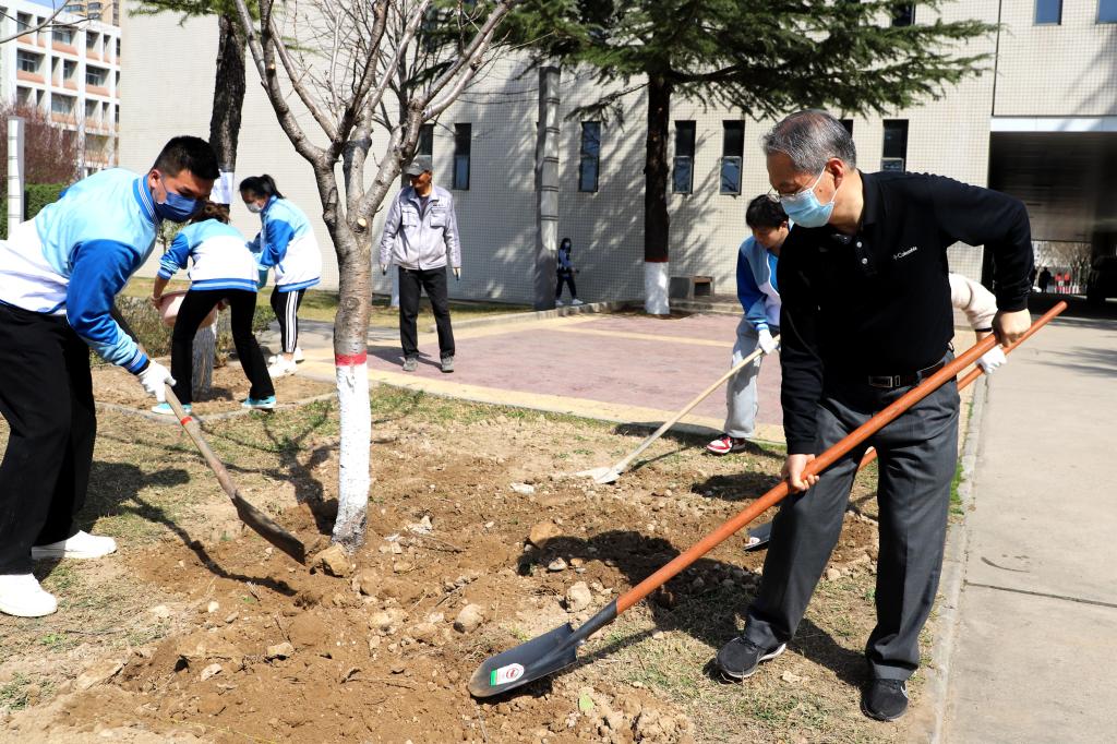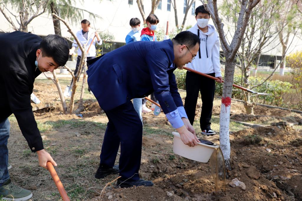 本网讯:春风催新绿,植树正当时。3月9日下午,为深入贯彻习近平生态文明思想,积极践行绿色发展理念,加快打造“绿色校园”步伐,我校组织开展了“履行植树义务,共建美丽校园”植树节主题活动。学校董事长赵超,全体校领导,教工及学生代表参加活动。