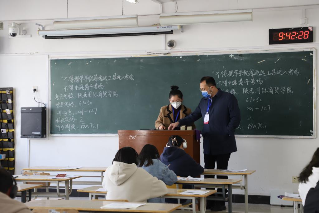 校长助理王文博带领学校四、六级考试领导小组成员到考试现场巡视和检查。整个考试组织到位,考场秩序井然;考生们认真思考,沉着发挥;监考老师严格执行监考纪律,考试全程无违纪作弊现象。在各部门的通力合作、密切配合下,我校2023年全国大学英语四、六级考试加考工作圆满结束。