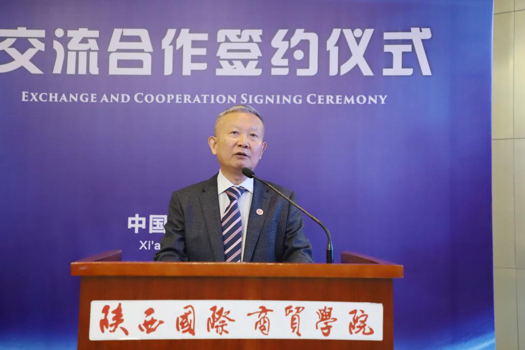 赵超在讲话中介绍,陕西国际商贸学院坚持走内涵式发展与校企合作的办学道路,学校积极开展国内外交流与合作,先后与西北大学、陕西中医药大学等国内二十多所院校结为合作学校,与英国、加拿大、法国、新加坡、韩国、马来西亚、泰国等多国高等学校建立了长期合作交流关系。他指出,学校将以此次签约为契机,深入贯彻落实党的二十大精神,持续推进创新驱动,积极实施教育对外开放质量提升工程,加快建设高水平中外合作办学,推动中外合作办学提质增效,努力开创更全方位、更多层次、更宽领域、更加主动的教育对外开放新格局,为陕西经济社会发展提供国际化人才支撑;他希望,此次合作办学能够为学校发展提供具有科学性和可行性的决策建议、为学校规划建议和发展思路提供支撑,分享更多具有战略性、前瞻性、创新性与针对性的理念认识、规划设想和可复制可推广的办学经验。