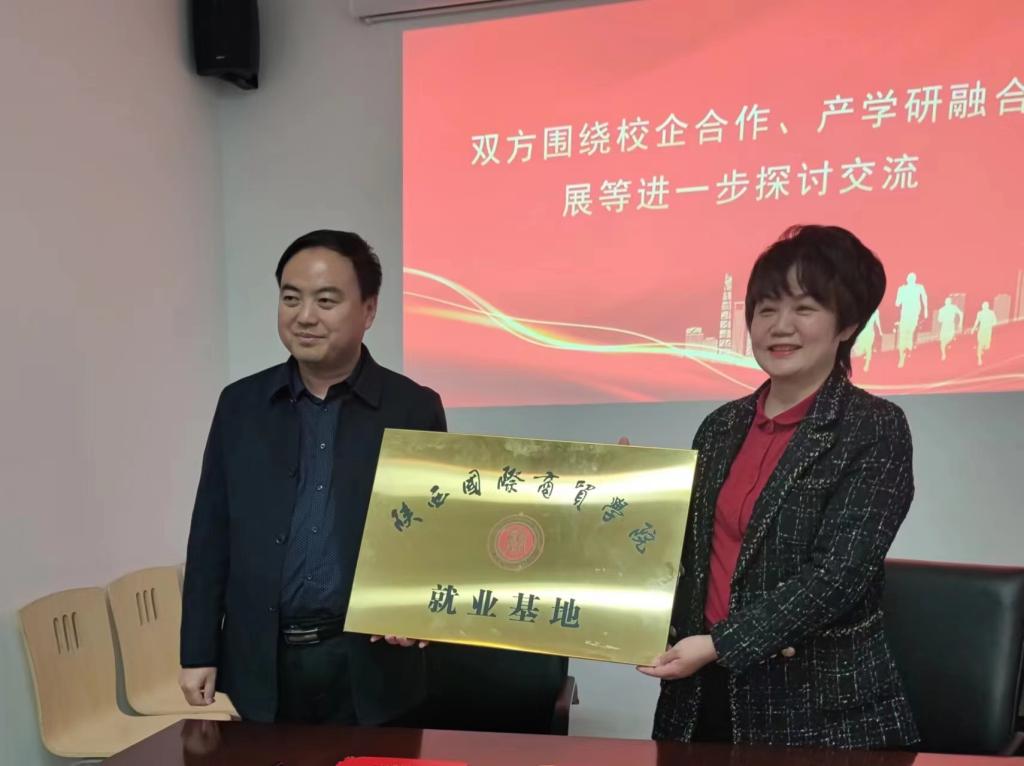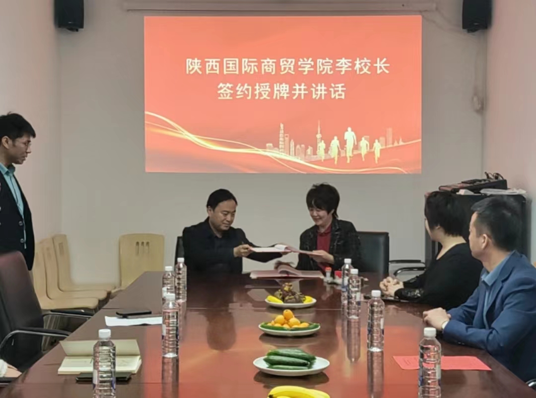 签署校企合作协议同时授予陕西金福祥瑞珠宝有限公司“陕西国际商贸学院就业基地”牌匾现场