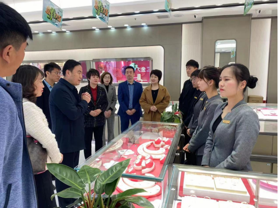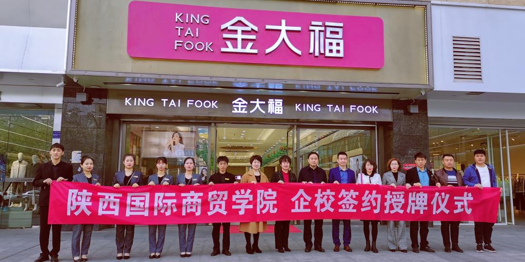 本网讯:为贯彻落实党中央、国务院“稳就业、保就业”的决策部署,精准对接实习单位做好拓岗位、促就业工作,4月7日上午,陕西国际商贸学院党委副书记、副校长李吉友、珠宝学院党总支负责人一行5人前往陕西金福祥瑞珠宝有限公司开展“访企拓岗促就业”专项行动暨签约授牌仪式,陕西金福祥瑞珠宝有限公司董事长刘涉、经理刘桥凯、督导孔英、店长边芬及学生代表参加了本次活动。