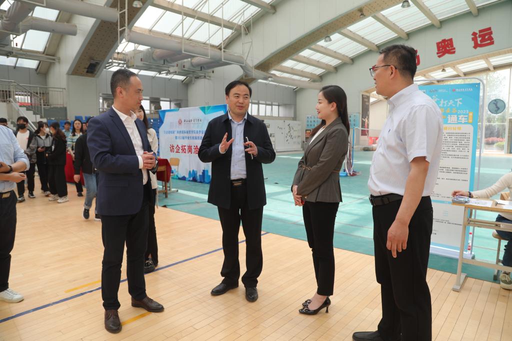 本次招聘会校领导高度重视,分管就业工作副校长李吉友亲临招聘会现场指导工作。二级学院党总支(副)书记、学生处、招生就业处等职能部门领导来到招聘会现场,详细了解企业用人需求和毕业生的应聘情况。各二级学院就业联络员、毕业班辅导员组织学生参加招聘会,指导学生应聘,并积极与用人单位洽谈交流,多形式开展访企拓岗促就业行动。