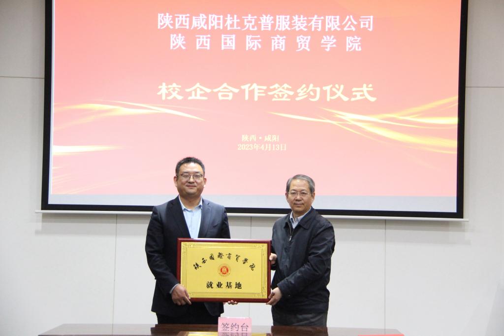 校企双方共同签订了就业基地协议书,我校授予陕西咸阳杜克普服装有限公司“陕西国际商贸学院就业基地”。