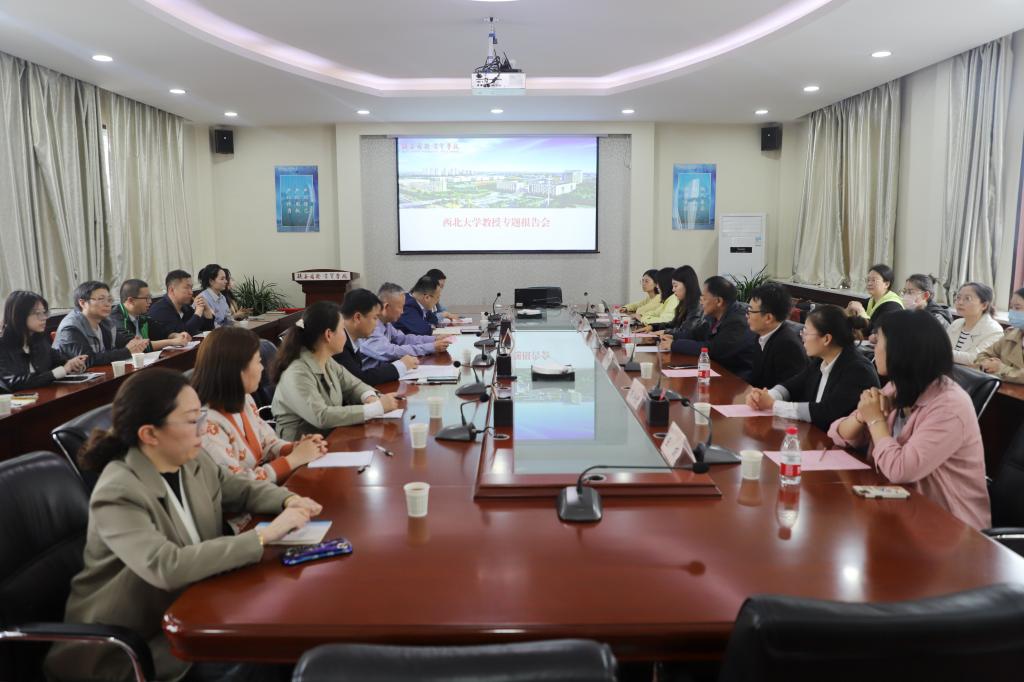 本网讯:4月13日下午,应我校邀请,西北大学博士生导师张文鹏教授和徐哲峰教授在行政楼五楼第二会议室进行了学术报告。学校校长王正斌、校长助理王文博、张利军,教务处、基础课部、信息工程学院相关人员聆听了此次报告。