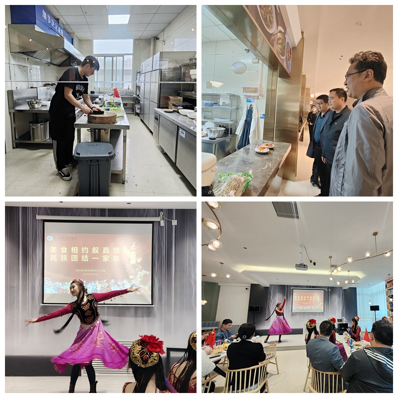 活动现场,伊丽米努尔和马贤两位少数民族同学精心为大家制作了“大盘鸡、手抓饭、粉汤...”等美食,同学们载歌载舞,尽显多才多艺,师生联谊共叙商院情,倾听学生爱校建议,感受学生爱校情怀。