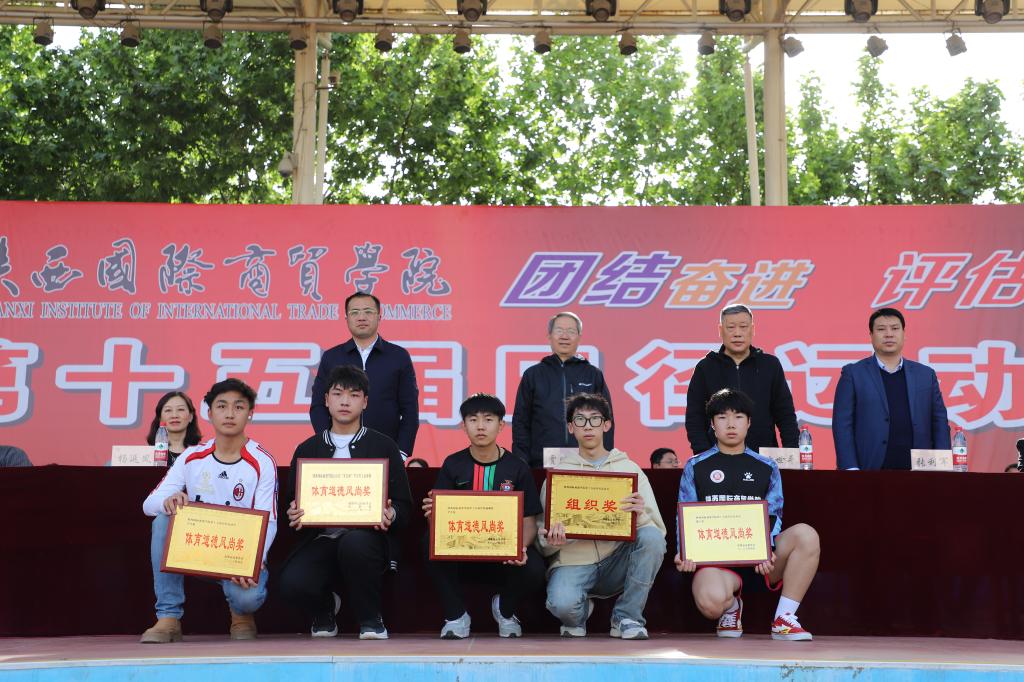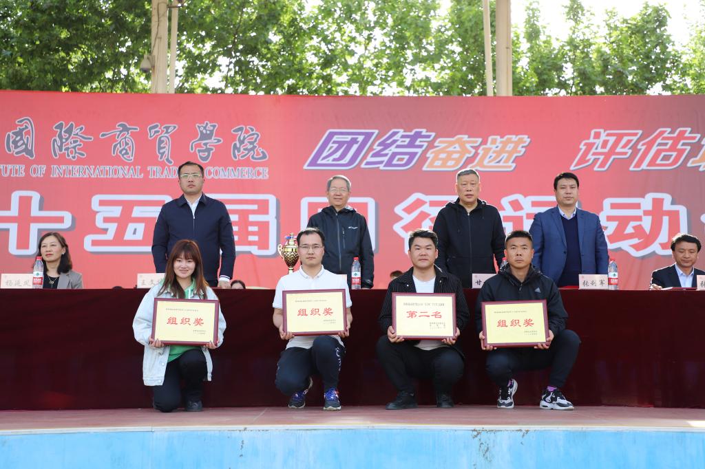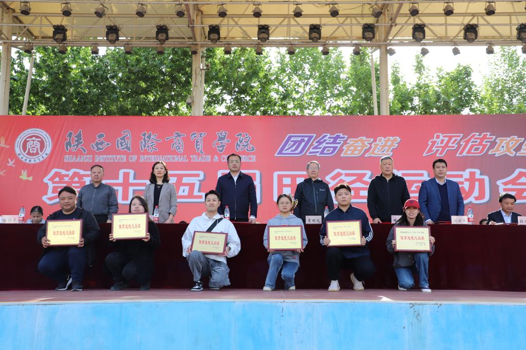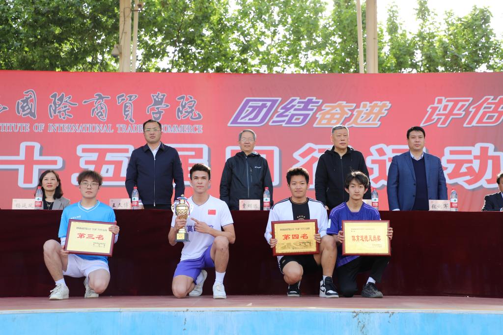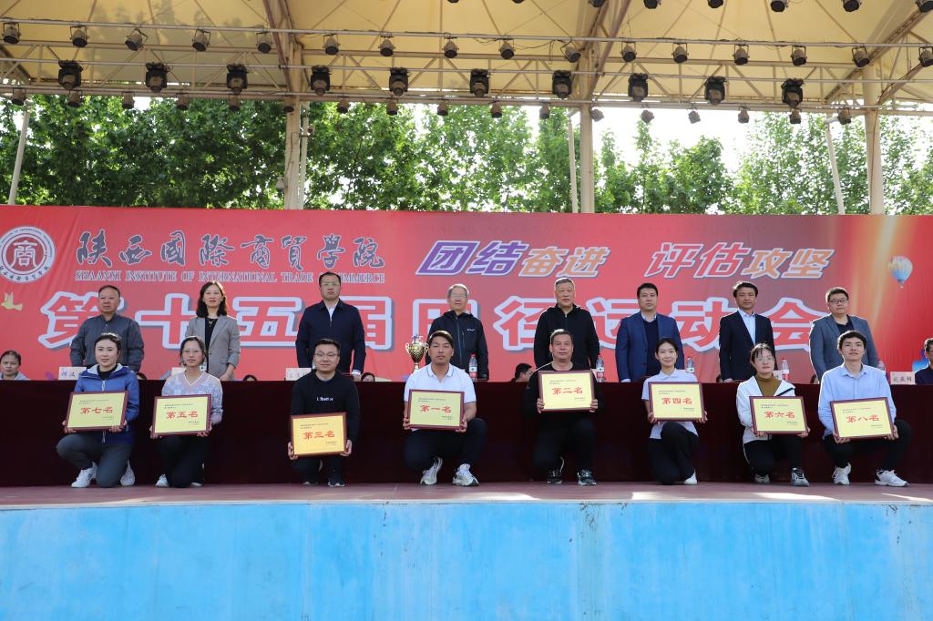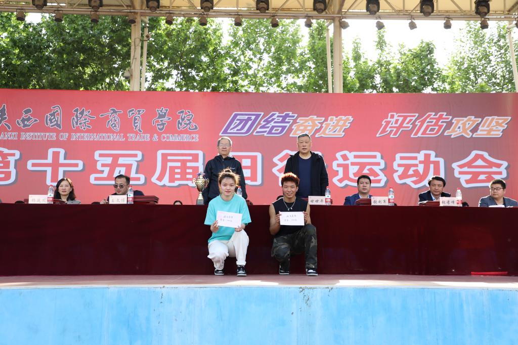 运动会总裁判长刘万斌宣布本届田径运动会比赛成绩及2022年“步长杯”足球赛团体奖名单,高职学院赵振辉同学在男子组100米比赛中,以10.94秒的成绩打破了11.13秒的校纪录;高职学院赖思晨同学在女子组跳高比赛中以1.36米的成绩打破了1.35米的校纪录。高职学院、信息工程学院、文学与教育学院、医药学院、中职校、时装艺术学院分别获得学生男子团体前六名;高职学院、文学与教育学院、医药学院、管理学院、信息工程学院、时装艺术学院分别获得学生女子团体前六名;高职学院教工、后勤保障处、珠宝学院教工、中职校教工、信息工程学院教工、管理学院教工分别获得教工团体项目前六名;国际经济学院、管理学院、信息工程学院、珠宝学院、时装艺术学院、高职学院分获学生组体育道德风尚奖;学生工作处、教务处、时装艺术学院、文学与教育学院、机关队、信息工程学院分获教工组体育道德风尚奖;体育部、校团委、医药学院、文学与教育学院分获组织奖;李航、曹晗、王鑫、马天梅、何伟、王长磊分获优秀指导教师奖;高职学院、医药学院、文学与教育学院、管理学院分获2022年“步长杯”足球赛前四名。