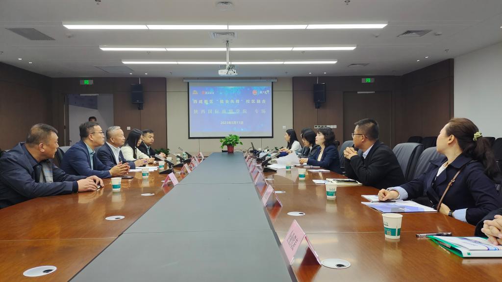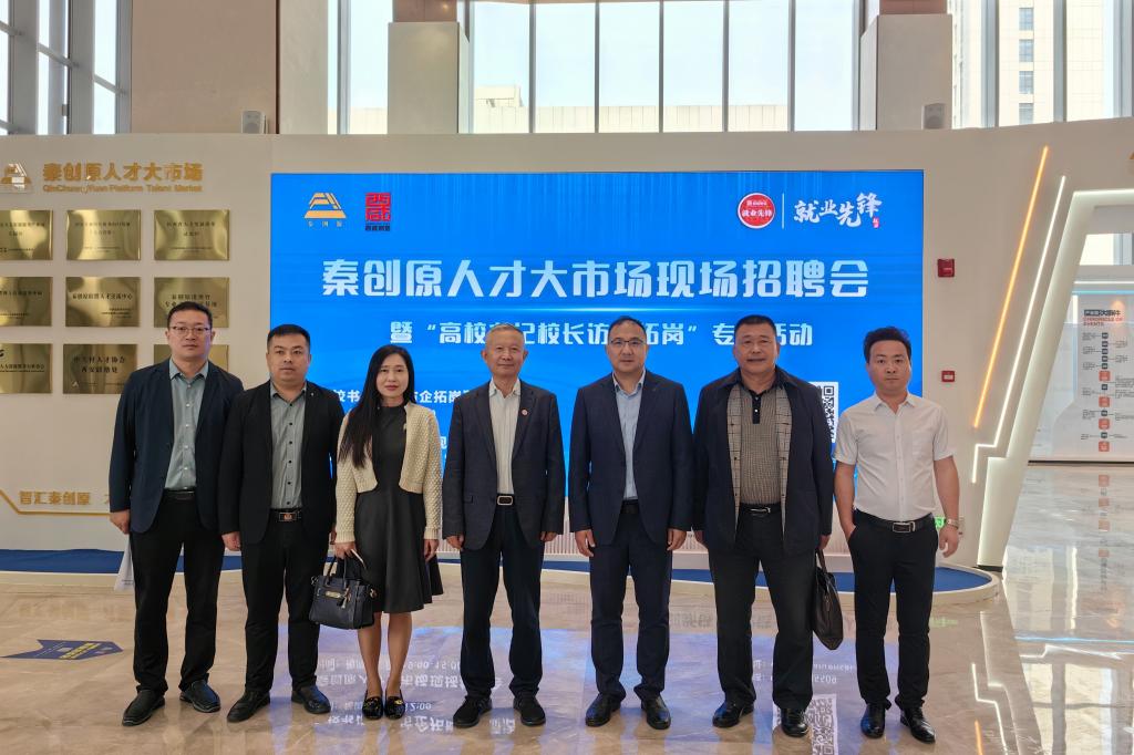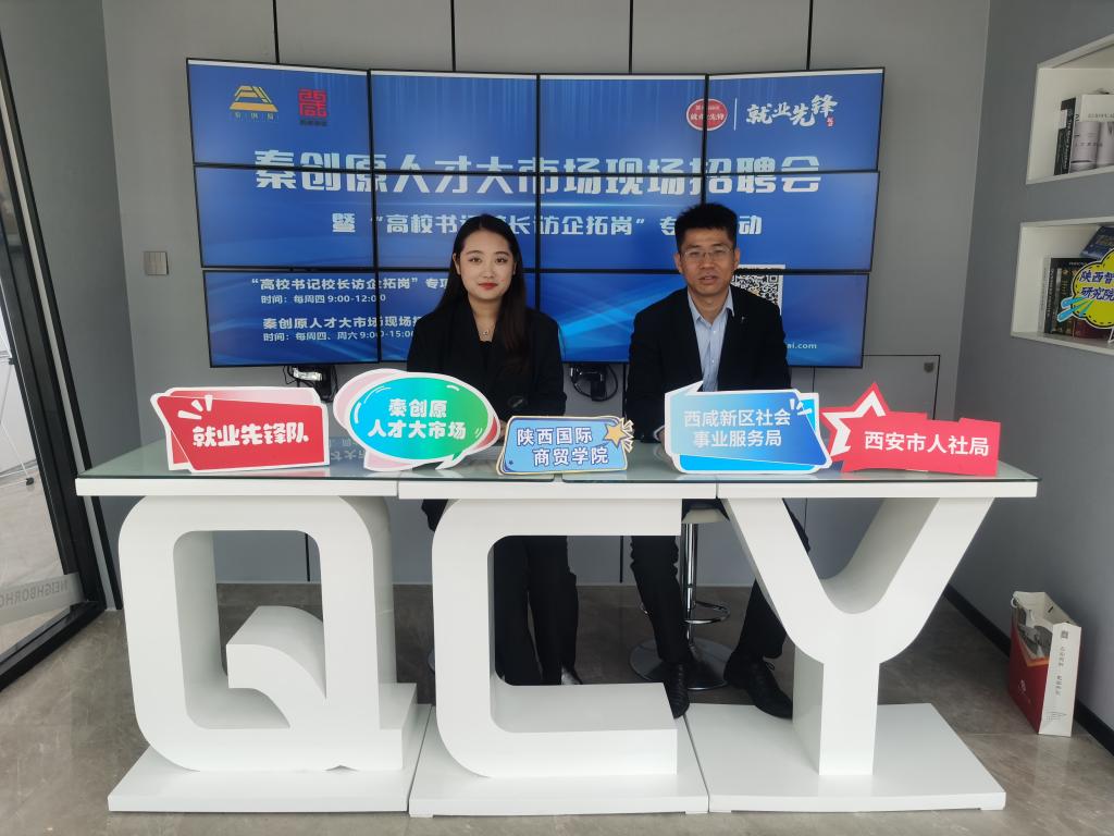 随后,学校领导与新区人力资源部工作人员及西咸新区多家企业代表进行座谈。座谈会上“政校企”三方就“如何依托秦创原人才池,发挥高校和企业特色优势,实现人才培养与用人需求的精准对接”进行了深入交流探讨。下一步,三方将依托新区秦创原总窗口发展契机和秦创原人才大市场的磁极效应,充分挖掘政府、高校和企业资源,实现资源转化合作,优化互助服务,协同创新发展,为毕业生高质量就业保驾护航。期间,招生就业处程凡老师通过“直播带才”,为毕业生和企业搭建桥梁,促进毕业生实现“云端”就业。