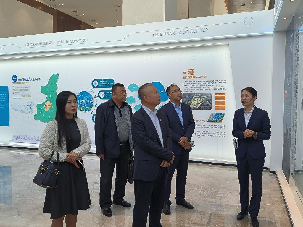 王正斌一行首先来到秦创原大市场综合服务大厅进行参观,西咸新区党工委人才办专职副主任、新区社会事业服务局副局长赵宏庆、西咸新区人力资源服务中心副主任杨蕊、陕西校际联聘人才科技集团总经理王剑等同志陪同并讲解。秦创原人才大市场作为建设省级人才发展改革试验区的重要举措,聚集省级、市级、新区三级服务职能,建设秦创原创新人才库、高层次人才集散枢纽,布局人才交流、创业、服务、展示中心,打造全球人才汇聚高地,开发秦创原人才云平台,为全省建设秦创原创新驱动平台提供服务。