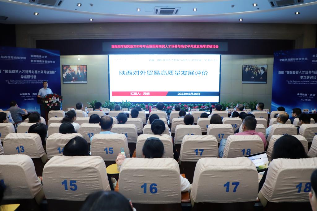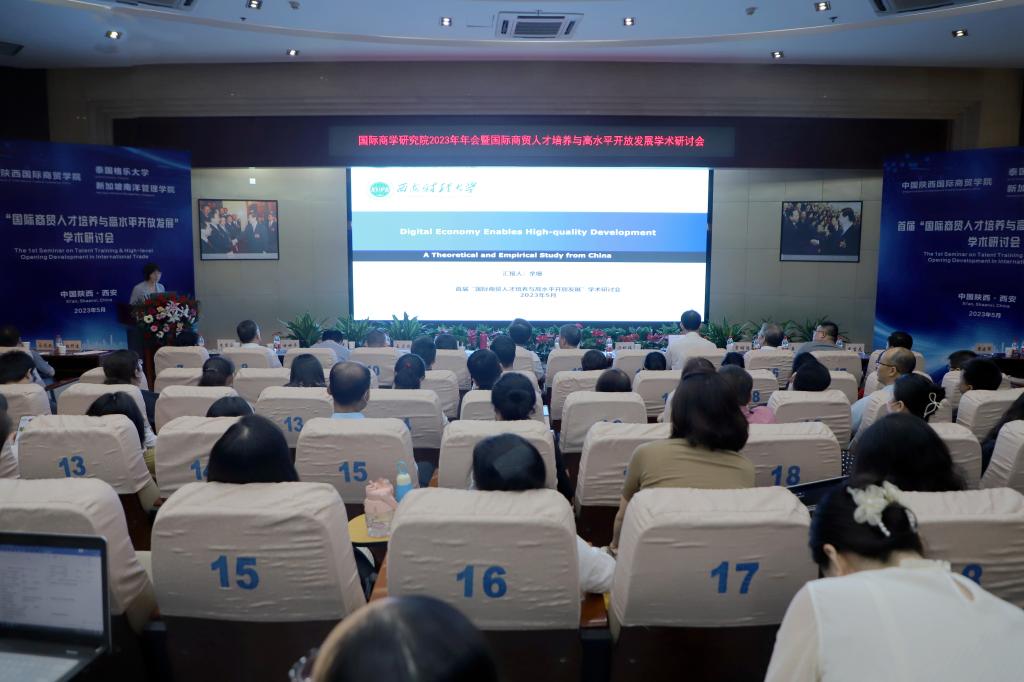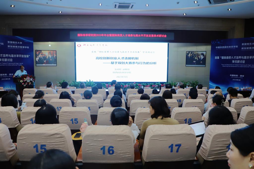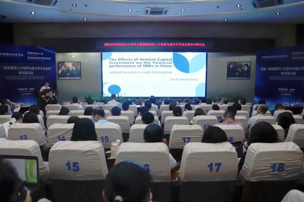 在交流发言环节,商学研究院学术委员会主席、西安交通大学冯根福教授,泰国格乐大学John Walsh(约翰博士),新加坡南洋管理学院克雷格▪阿尔布莱森博士,中国高等教育学会科技服务专家指导委员会副主任委员丁德科教授,西安财经⼤学余珊副教授,西安外国语⼤学马嫣然副教授,陕西国际商贸学院国际经济学院院冯明副教授,陕西国际商贸学院⼽岐明副教授围绕本次大会主题,结合自身的研究成果,分别作了《Creativity and Economic Growth:The Vietnam Example》、《国际商学⼈才的科学素质》、《数字经济赋能⾼质量发展——来自中国的理论与实证研究》、《风险投资对中国中小企业财务绩效的影响》、《陕西省对外贸易⾼质量发展评价》、《高校创新创业⼈才选拔机制——基于双创⼤赛参与行为为的分析》等主旨报告。
