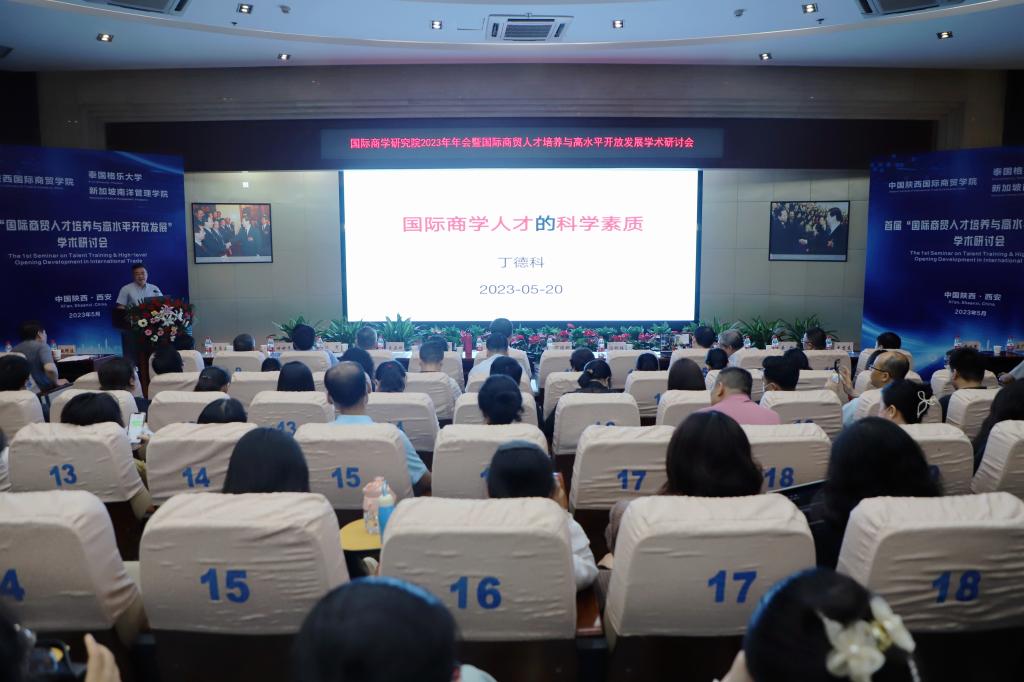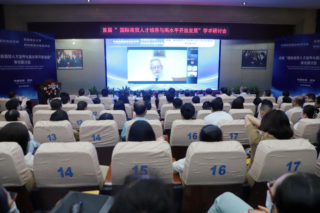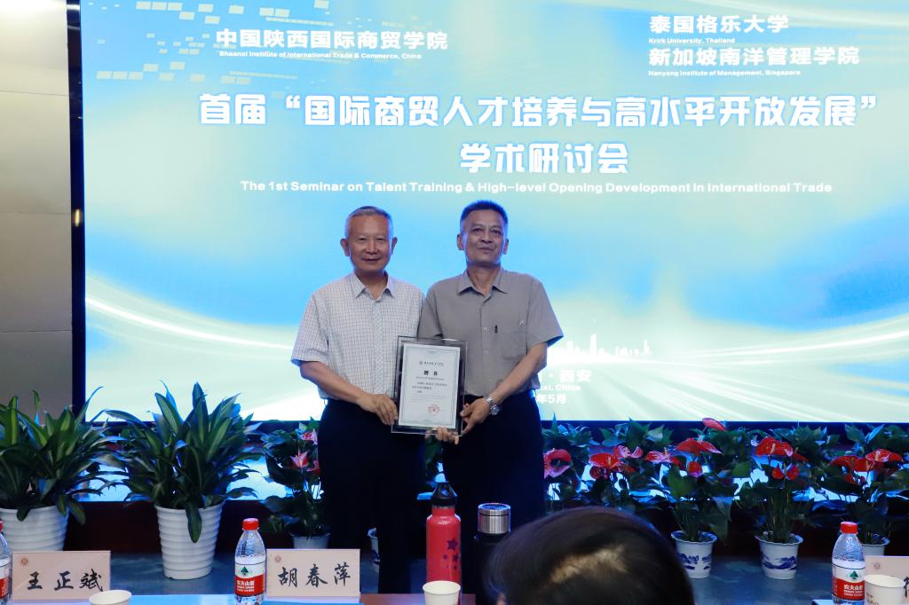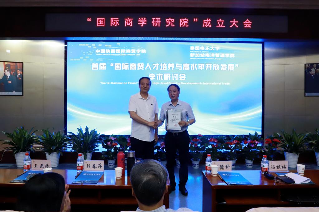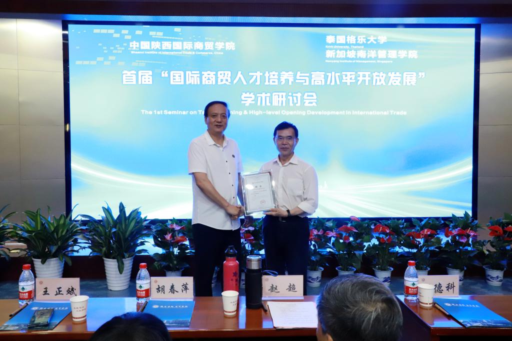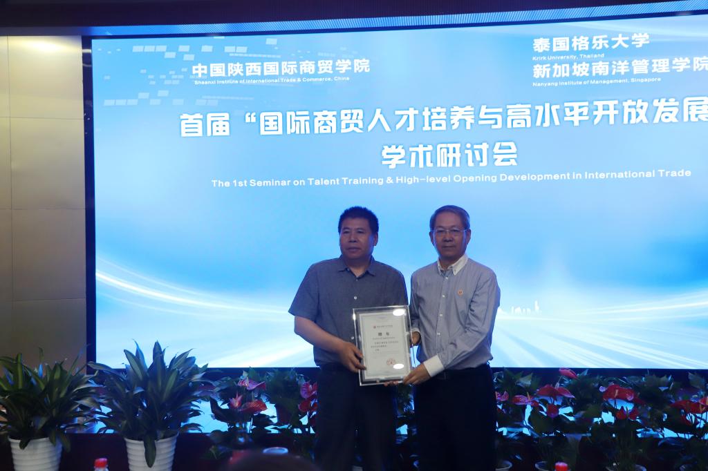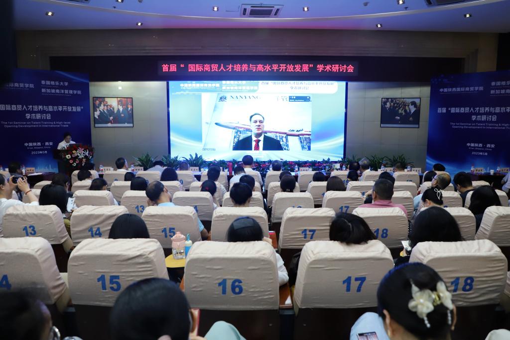 本网讯:为了进一步深化教育教学改革,转变人才培养模式,实现国际教学资源共享,培养实践能力强、具有国际视野的高素质创新型人才。5月20日下午,首届“国际商贸人才培养与高水平开放发展”学术研讨会在陕西国际商贸学院学术报告厅隆重召开,中国高等教育学会科技服务专家指导委员会副主任委员丁德科教授,泰国格乐大学国际交流合作处副处长冯光,泰国格乐大学John Walsh(约翰博士),新加坡南洋管理学院克雷格▪阿尔布莱森博士,西安交通大学冯根福、李琪、崔建军、李香菊、魏修建、闫奕荣教授,陕西科技大学马广奇、郑广文教授,西安财经大学余姗副教授,西安外国语大学马嫣然副教授,深圳航空有限公司轩余恩,韩亚银行西安行副行长王立文,国家电网陕西公司赵旭锋,泰国格乐大学国际处任帅帅以及陕西国际商贸学院董事长赵超,全体校领导,副处级以上干部以及师生代表参加会议,会议由管理学院负责人主持。