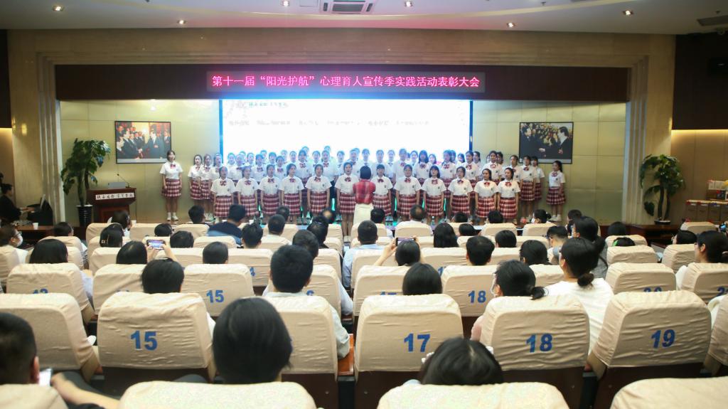 最后,文学与教育学院合唱团演唱了陕西省高校“阳光护航”心理育人宣传季实践活动推广心理育人曲目,由郑林科教授亲自作词的心理育人歌曲《善爱我》。