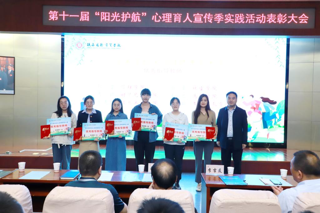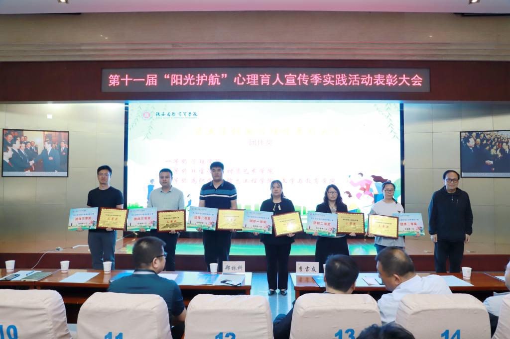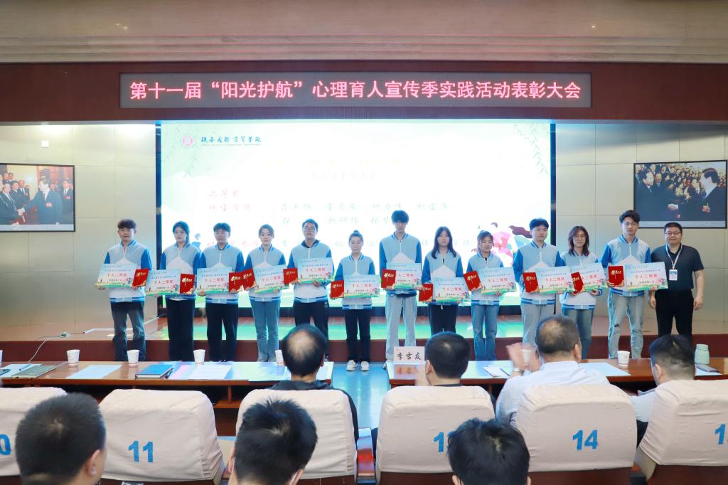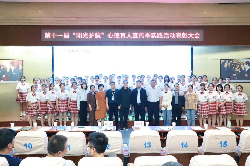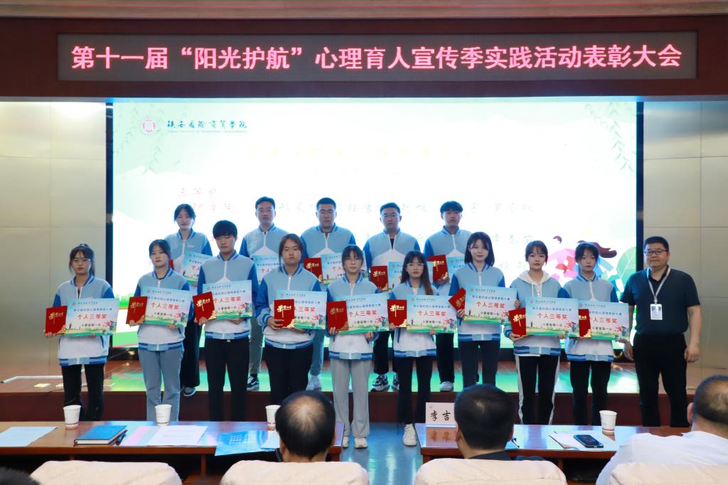 李吉友代表学校党政向受表彰的获奖团体和个人表示热烈祝贺。他表示,在第十一届“阳光护航”心理育人宣传季实践活动中,学校以学习贯彻习近平新时代中国特色社会主义思想主题教育为契机,聚焦内容创新形式,突出学生主体作用,着力增强活动的吸引力、感染力、科学性和实效性,在大学生心理健康宣传教育,普及心理健康知识与理念,学生心理素质提升,举办心理育人特色活动等方面均取得了显著效果。他强调,一是要结合主题教育,回归立德树人初心。学校心理健康教育工作必须紧紧围绕学习贯彻习近平新时代中国特色社会主义思想主题教育,以育人为目的、立德树人为根本、三全育人为途径,围绕“培养什么人、怎样培养人、为谁培养人”这一根本问题,牢牢把握主题教育“学思想、强党性、重实践、建新功”的总要求,紧密结合学校思想政治和心理健康教育工作实际,以正视问题的自觉和刀刃向内的勇气,出真招、出实招,努力将学习成果转化为做好本职工作、推动事业发展的生动实践。二是要坚持全盘谋划,促进工作提质增效。要进一步夯实“四级”预警防控体系,扎实开展“四进两联一交友”活动,强化心理健康教育“第一课堂”主阵地,构建“理论+实践+团辅”教学模式,建立“互联网+心理育人”平台,实现线上预约、线上咨询、线上学习等,为学生提供随时化、便捷化、自助化的心理服务;创新开展心理育人工作坊,通过学生自助预约的形式,变“大水漫灌”为“精准滴灌”,让心理育人实现全覆盖,使学生更能接受和参与其中,为学生提供精准教育、精准管理、精准服务,着力深化教育教学、实践活动、咨询服务、危机干预、平台保障,促进大学生健康成长,推动新时代心理育人工作提质增效。三是要聚焦三全育人,提升心理育人实效。通过参加全省高校2023年春夏季学生心理“双检”普查调研测评,举办第五届校园心理情景剧大赛、大学生心理健康科普知识竞赛、心理微课展评、优秀咨询案例和优秀教案等比赛,要深入二级心理辅导站研判个案,各二级心理辅导站要积极响应,搭建活动平台,加强宣传普及,开展“一站一品”特色育人活动。通过形成全员育人育心体系、拧紧全程育人链条和做强全方位育人共同体等三个方面,积极融入学校“三全育人”综合改革中,重视发挥系统育人力量,产生出良好的综合效应,切实提升大学生心理健康教育工作质量和水平。
