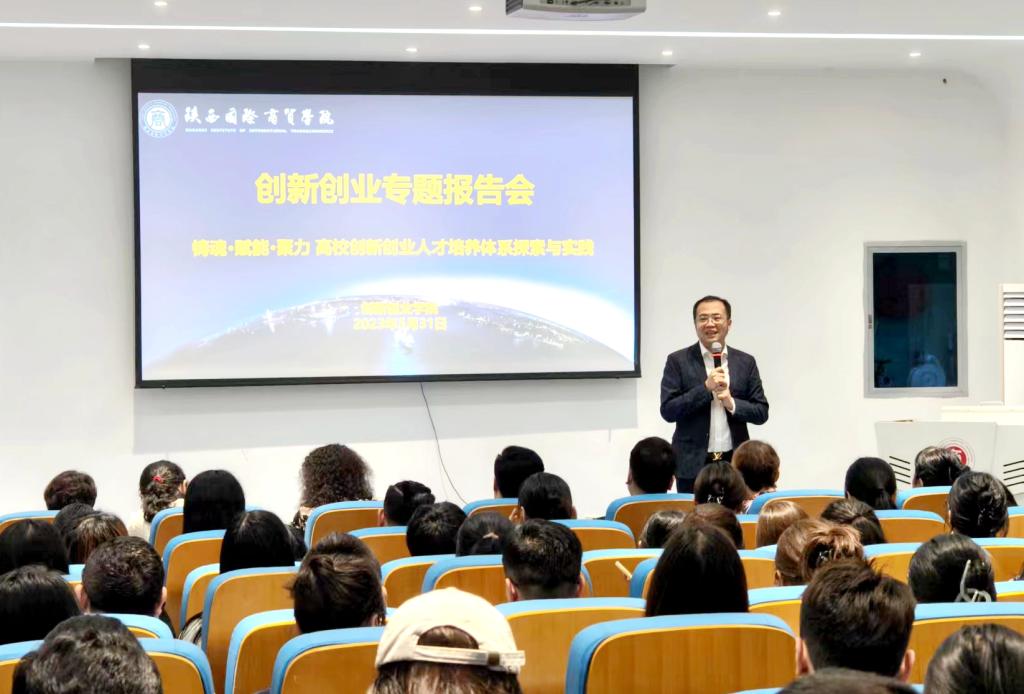 本网讯:5月31日下午,我校邀请西安电子科技大学创新创业学院副院长、中国高校众创空间联盟“北斗星”创新创业导师,西安市创业导师尹鹏教授来校作题为《铸魂 赋能 聚力——高校创新创业人才培养体系探索与实践》的专题报告。校长助理王文博及各二级学院负责人、教师代表聆听了报告。