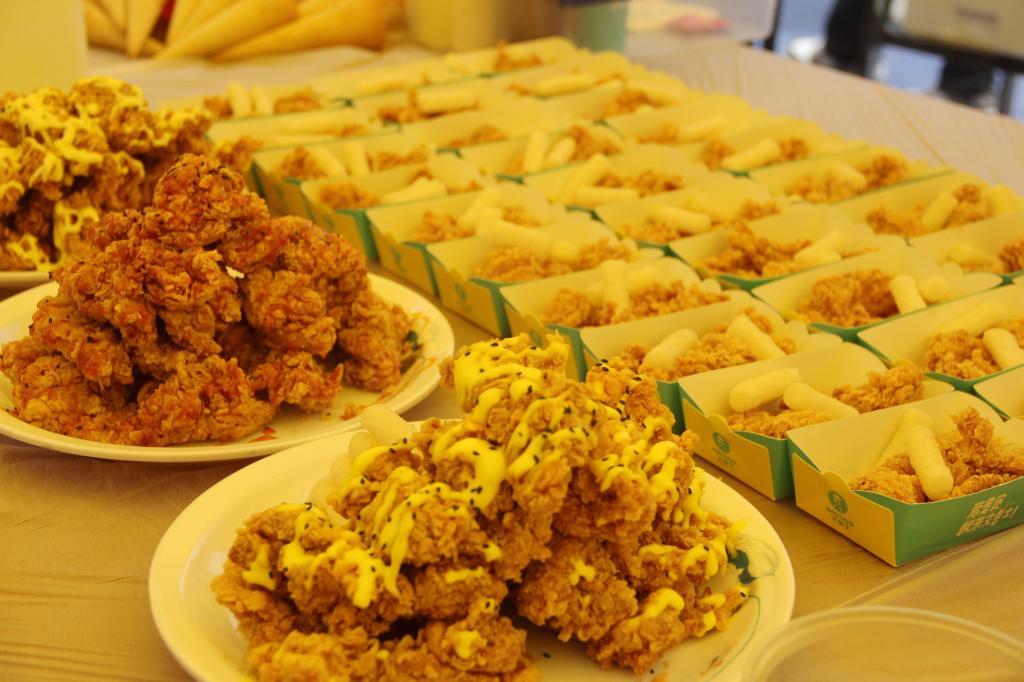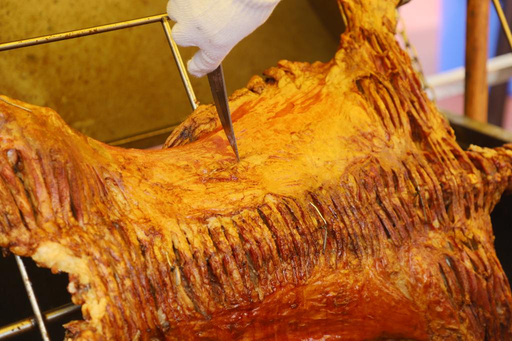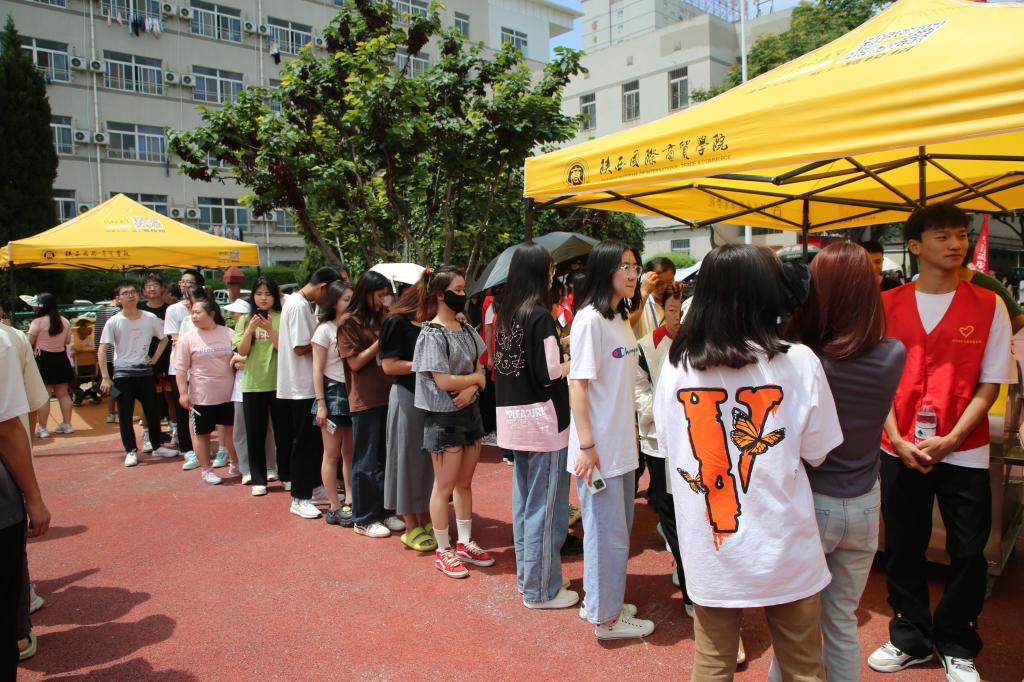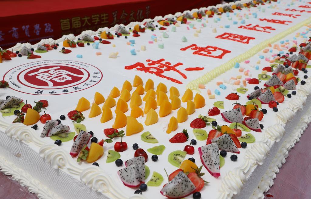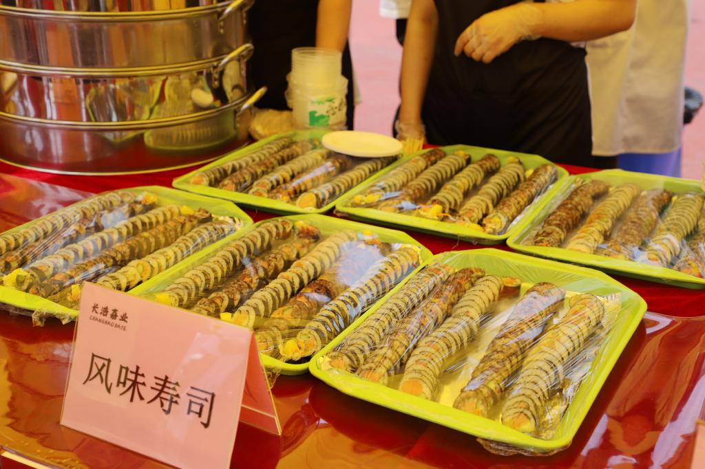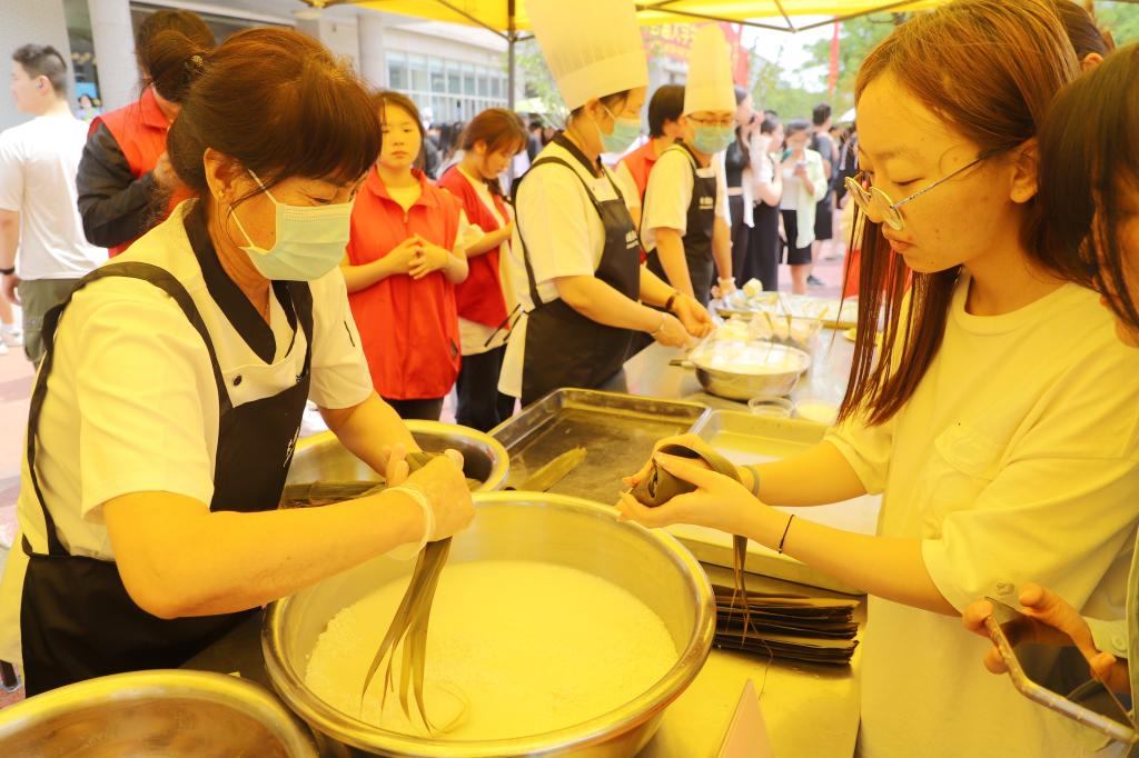 巨型蛋糕、烤全羊、淄博烧烤、蒸饺、金线油塔、寿司、特色龙虾……桌子上摆满了色香味俱全的各类菜肴,校内各家餐饮公司纷纷拿出自家绝活,各色美食精彩呈现,广场上食物飘香,让人垂涎欲滴。师生们三五成群,在各个美食摊点前驻足流连,排队品尝丰盛美味的食物。现场人头攒动,前来品鉴的师生络绎不绝,赞不绝口,每个人脸上都洋溢着快乐的笑容。