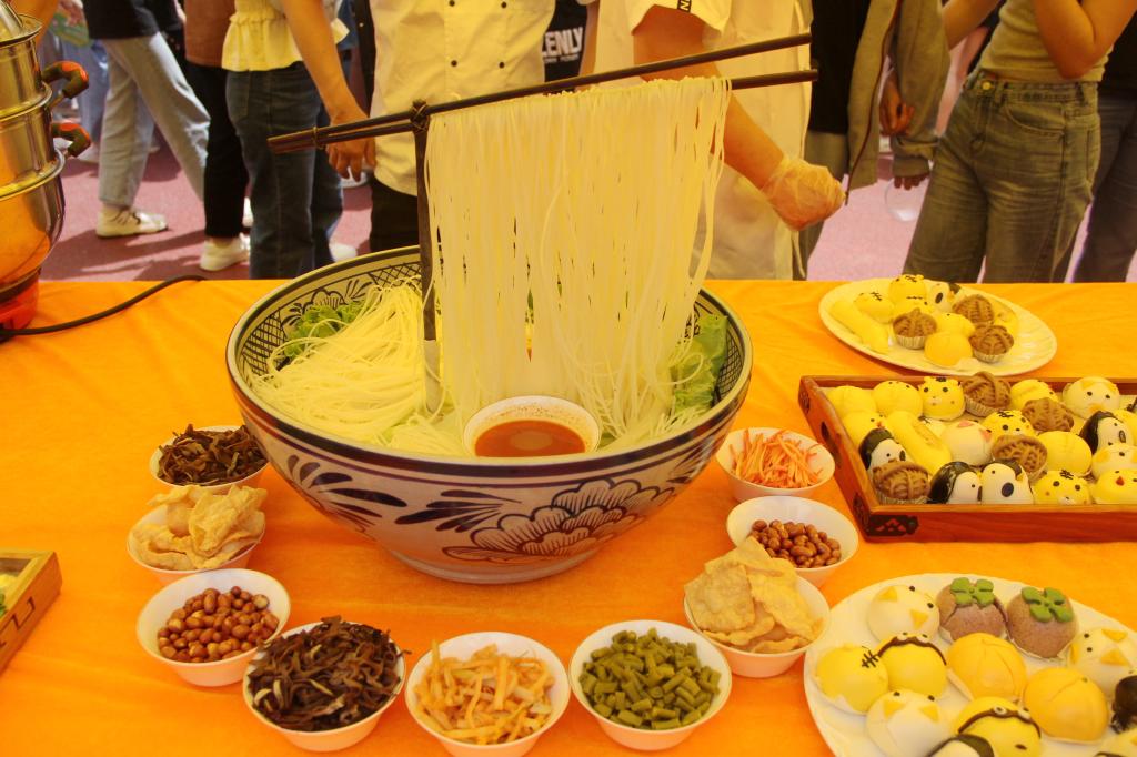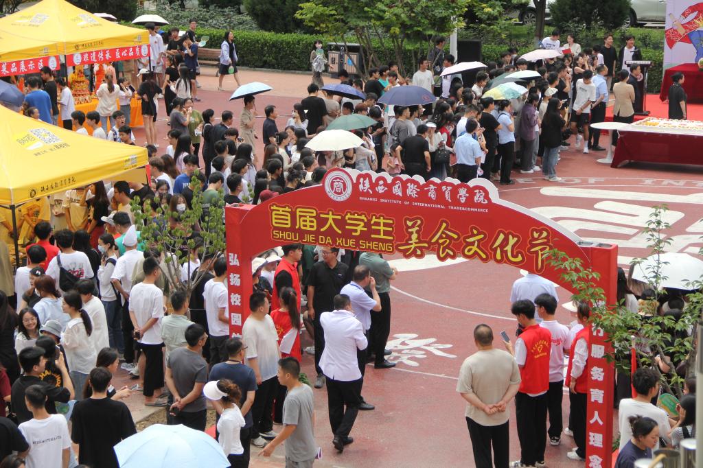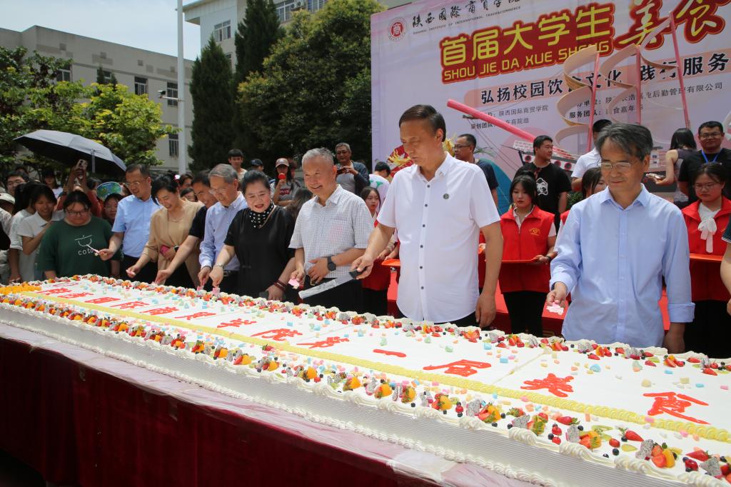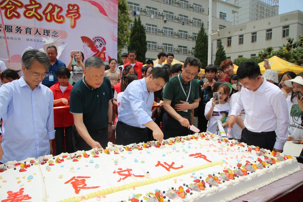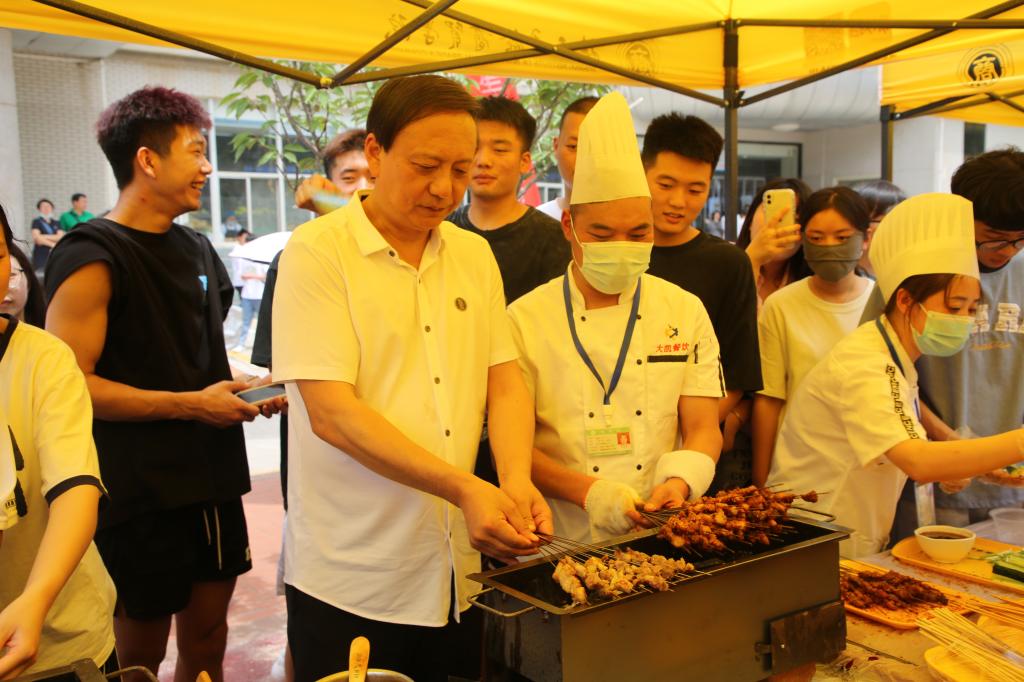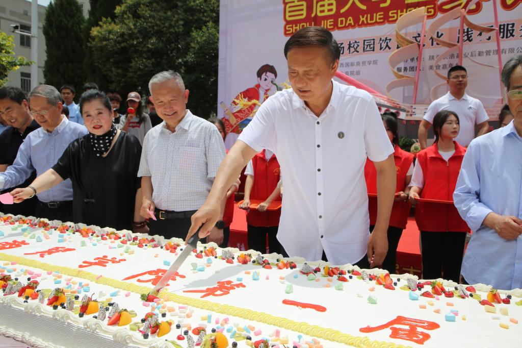本网讯:为弘扬中华传统饮食文化,丰富我校师生校园文化生活,引导师生树立科学饮食、健康生活的理念,发挥后勤服务育人功能。6月8日上午,我校在怡馨苑广场举行首届大学生“美食文化节”,学校董事长赵超,全体校领导,陕西长浩嘉业后勤管理有限公司总经理安得萌,陕西大凯实业有限责任公司董事长王琴玲,学校相关职能处室负责人以及全体师生参加活动。活动开幕式由文学与教育学院学生牛彤主持。