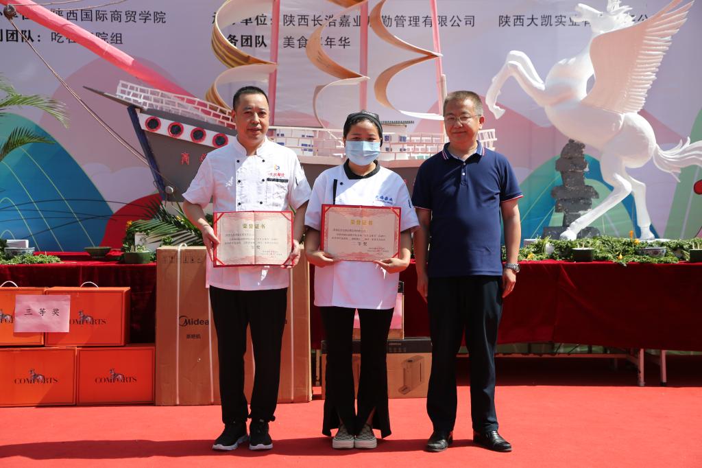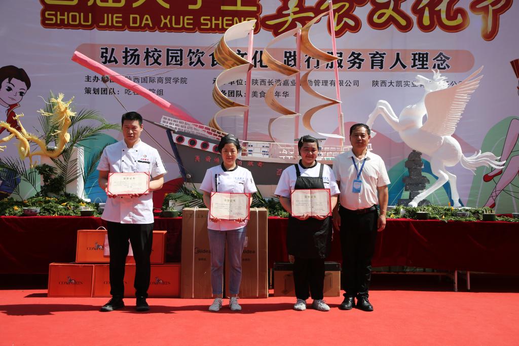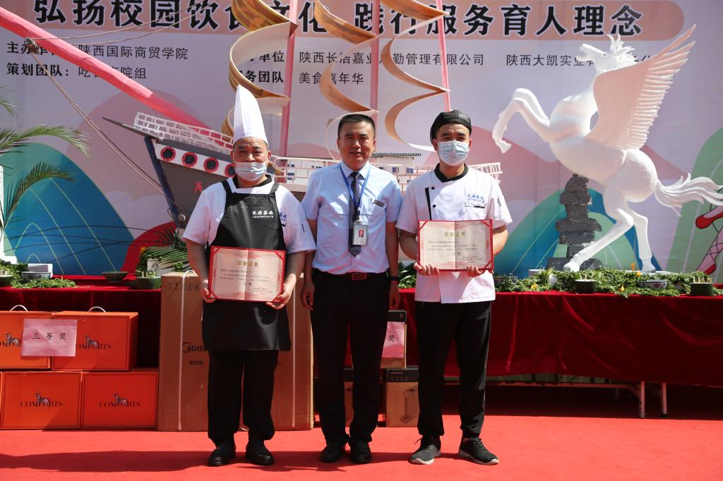 经师生投票评选,最终陕西长浩嘉业后勤管理有限公司和陕西大凯实业有限责任公司获优秀组织单位;陕西长浩嘉业后勤管理有限公司花样馍馍项目获技能展示一等奖,陕西大凯实业有限责任公司湖北豆皮项目获技能展示二等奖,陕西长浩嘉业后勤管理有限公司牛肉拉面项目和甜品裱花项目获技能展示三等奖;陕西长浩嘉业后勤管理有限公司 秘制卤味项目、手工蒸饺项目,陕西大凯实业有限责任公司油焖大虾项目获美食品尝三等奖,陕西长浩嘉业后勤管理有限公司酒酿圆子项目和陕西大凯实业有限责任公司大凯香辣虾项目获美食品尝二等奖,陕西长浩嘉业后勤管理有限公司冰糖雪梨项目获美食品尝一等奖。