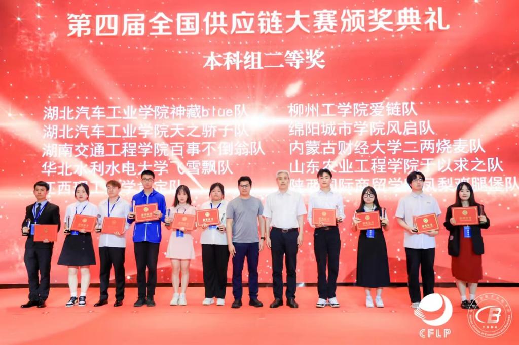 本网讯:6月9日-10日,由中国物流与采购联合会举办的第四届全国供应链大赛总决赛在海口举行。大赛以线上线下相结合的形式进行,自2023年3月启动以来,历时三个月,共有来自全国30个省、自治区、直辖市的5359人成功报名取得参赛资格,其中包含南开大学、东南大学、中央财经大学等众多985、211在内本科院校。我校物流管理专业本科20级学生赵莘戎、李仁杰、肖应杰、周礼阳在营销与物流教研室教师李宝侠、花卉的指导下,通过初赛、复赛的激烈竞争最终入围全国总决赛,最终夺得本科组二等奖的优异成绩。