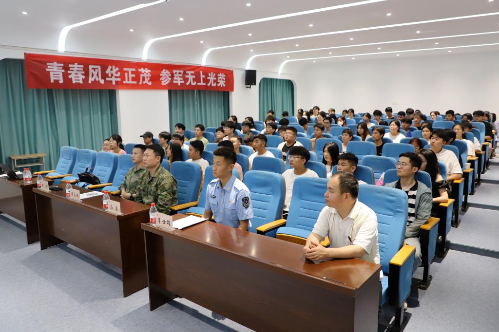 本网讯:为认真贯彻落实国务院、中央军委征兵命令和全省征兵工作会议精神,进一步培养青年学生投身强军兴军伟业的使命担当和家国情怀。6月15日,学校邀请咸阳市秦都区人武部副部长华永伟中校、咸阳军分区动员处参谋马鑫少校,军分区应征入伍宣讲团成员、我校时装艺术学院退役复学大学生代表李世辉一行,来校宣讲2023年下半年大学生征兵及直招军士相关政策。各学院毕业班辅导员及毕业班大学生征集对象参加宣讲会。宣讲会由学生工作处征兵工作站相关负责人主持。