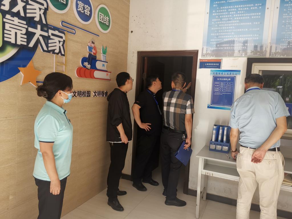 本网讯:根据《陕西省校园安全生产重大事故隐患专项排查整治2023行动实施方案》文件精神及指示,并结合学校“端午节”放假通知要求,为切实做好学校稳定安全工作,严防各类事故的发生,6月21日上午,常务副校长、党委副书记、纪委书记贾明远,校长助理王文博,校长助理张利军分三组带队开展了一次校园安全专项检查,部分职能处室负责人及相关人员参与了检查。