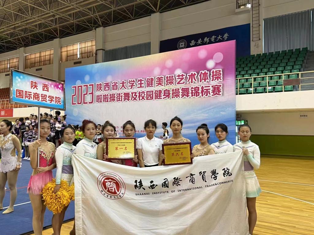 本网讯:6月19日至21日,由陕西省教育厅主办的2023年大学生健美操、艺术体操、啦啦操街舞及校园健身操舞在西安邮电大学举行,全省43所高校的学生参加了本次比赛。我校健美操代表队参加了本科院校组的比赛。在学校的大力支持下,经过两个多月的刻苦训练,我校参赛选手在比赛中不畏强手,发挥出色,最终获得女子甲组艺术体操团体第一名,啦啦操团体第六名;单项艺术体操六级彩带第一名,艺术体操五级徒手第五名,街舞啦啦操第二名,花球啦啦操第7名的好成绩。