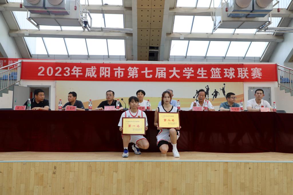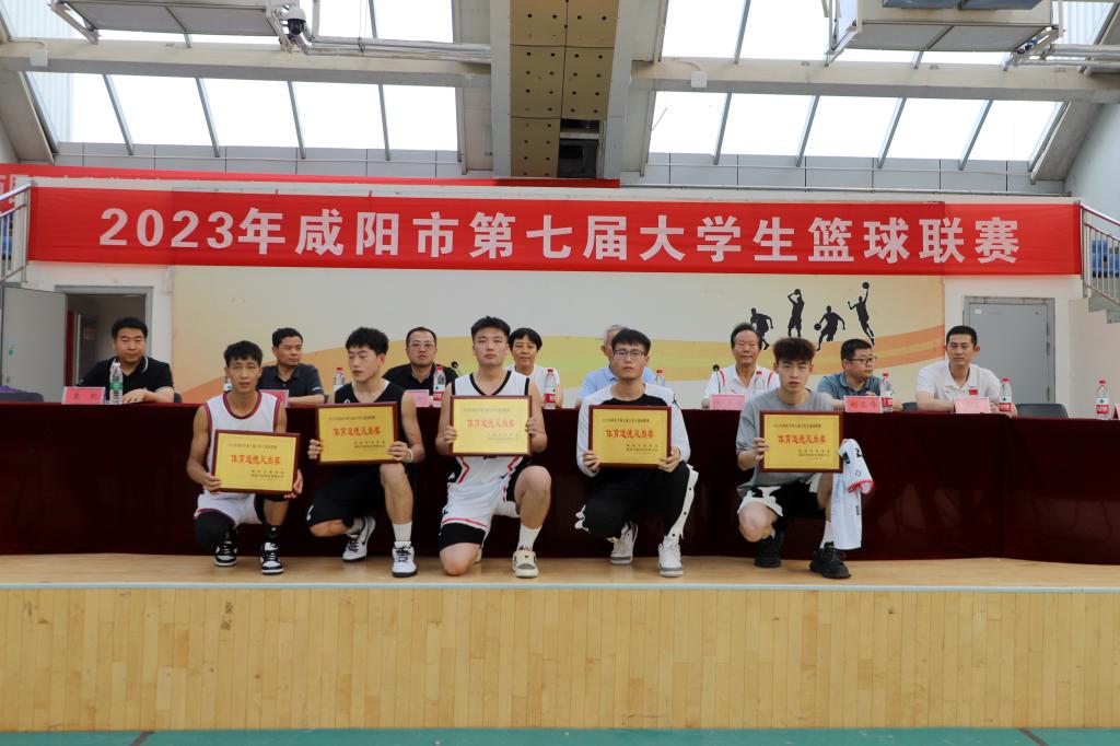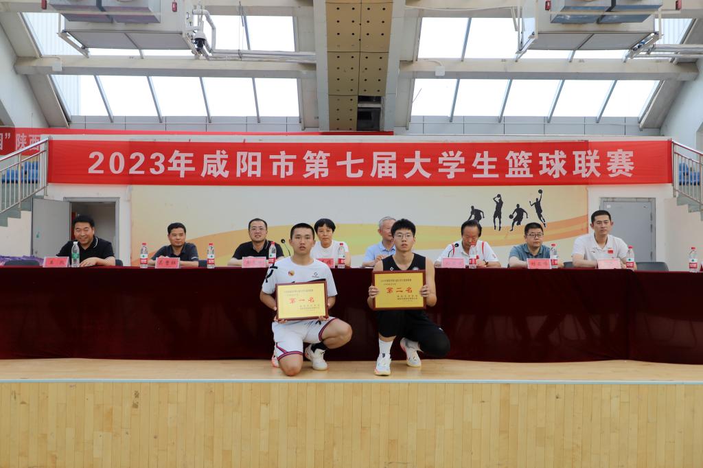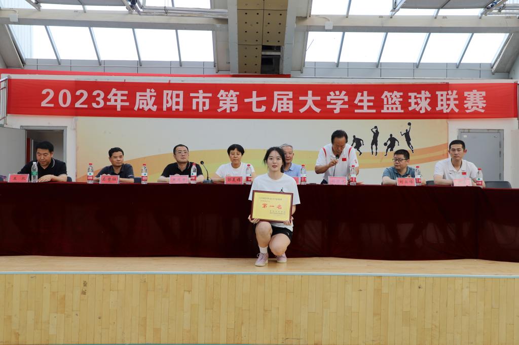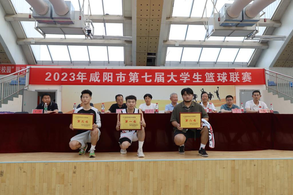 本网讯:6月21日下午,2023年咸阳市第七届大学生篮球联赛在西藏民族大学和咸阳师范学院决赛之后圆满闭幕,随后在我校步长体育馆隆重举行了闭幕式。闭幕式由陕西省民办高校体育联盟常务理事长兼秘书长、咸阳市高校体育联合会主席、陕西国际商贸学院体育部部长刘万斌主持。咸阳市体育局副局长郭美娟,陕西国际商贸学院校长王正斌,陕西国际商贸学院校长助理王文博,咸阳市体育局吴整社,咸阳市社会体育指导员协会副主席赵磊,陕西国际商贸学院学生工作处负责人,体育部相关负责人出席颁奖仪式。