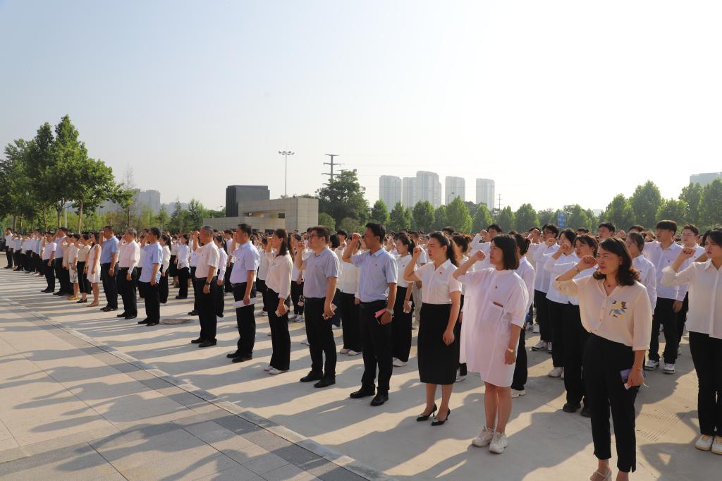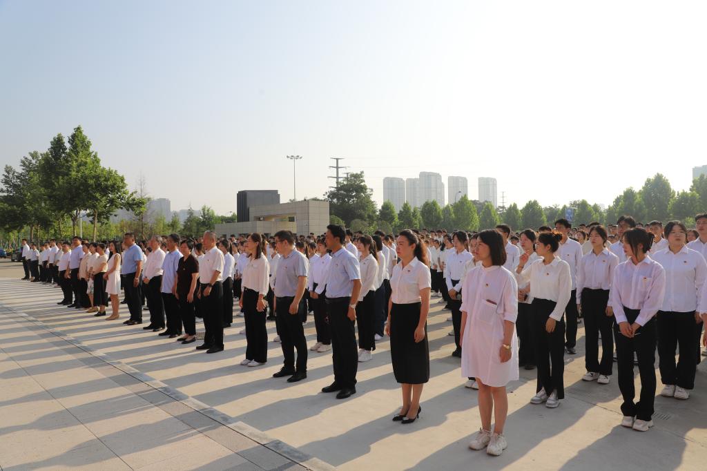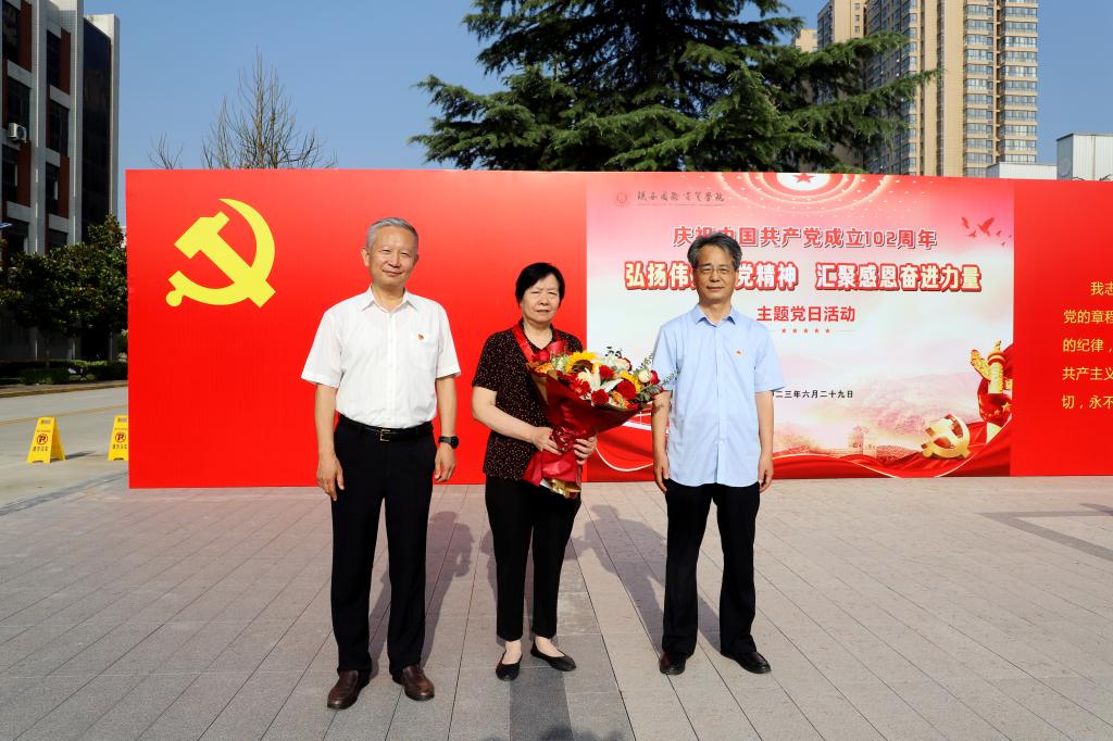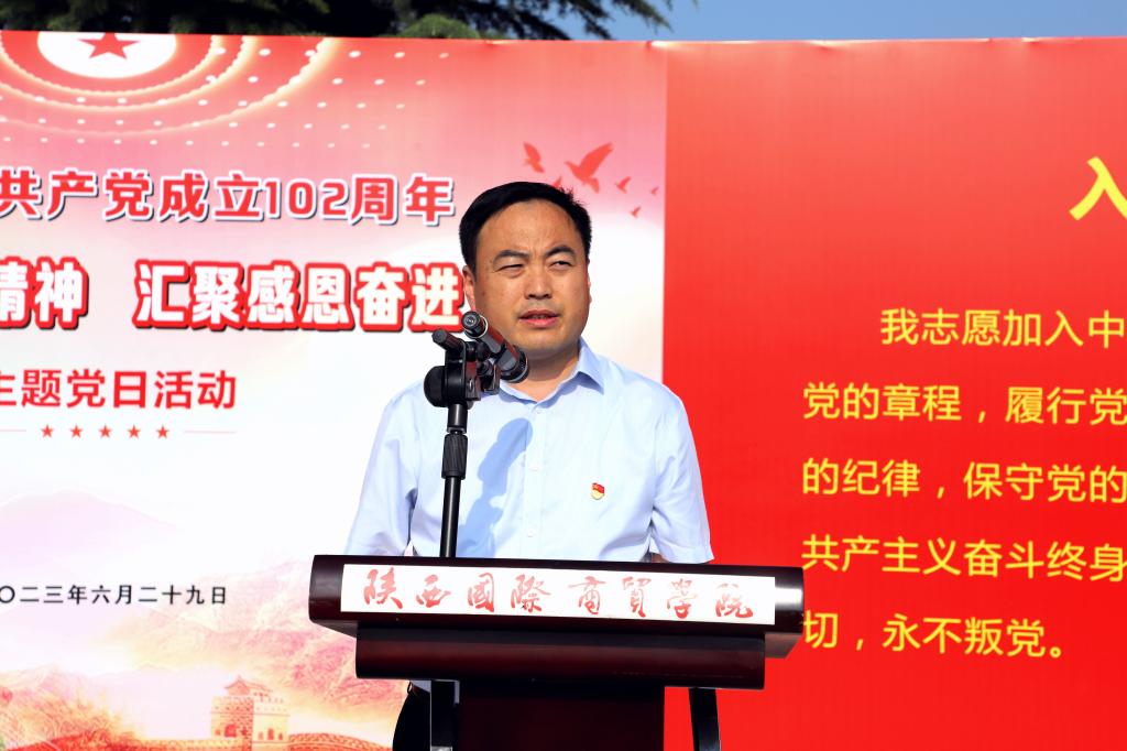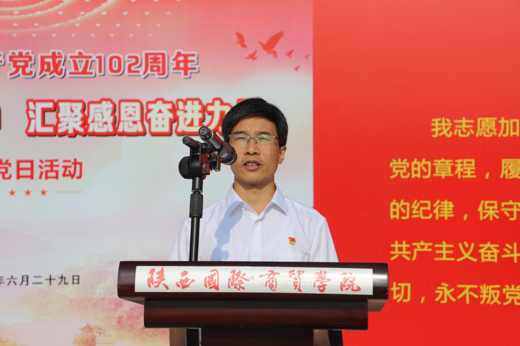 本网讯:在全党深入开展学习贯彻习近平新时代中国特色社会主义思想主题教育、全校上下深入学习贯彻习近平总书记在听取陕西省委和省政府工作汇报时的重要讲话精神的关键节点。6月29日上午,我校在南校区东大门广场举行“弘扬伟大建党精神 汇聚感恩奋进力量”主题党日活动,隆重庆祝中国共产党成立102周年。校长王正斌,党委书记、督导专员康亚国,常务副校长、党委副书记贾明远,各级党组织负责人、全体辅导员、教师党员代表、全体预备党员等500余人参加活动,活动由党委副书记、副校长李吉友主持。