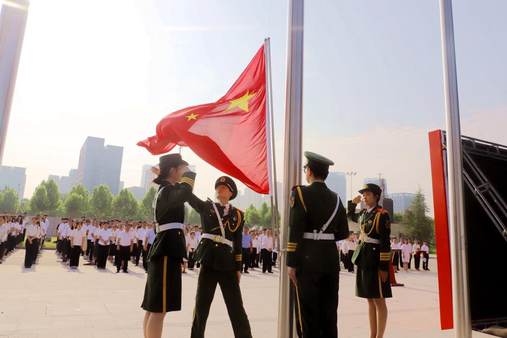 上午8时,英姿飒爽的国旗护卫队迈着矫健的步伐,护卫五星红旗走向升旗台。雄壮的国歌声响彻广场,鲜艳的五星红旗冉冉升起,全体师生党员同唱国歌,向国旗行注目礼。