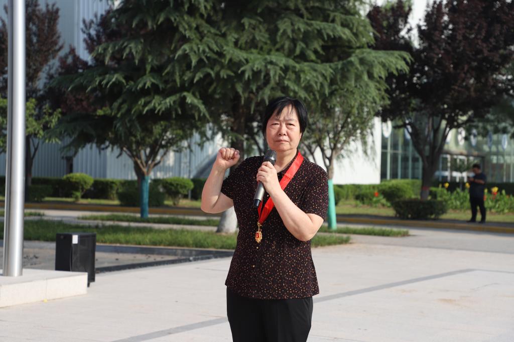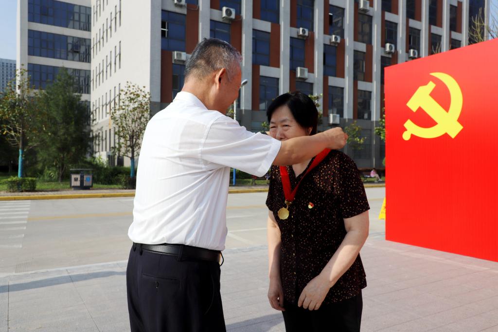 升旗仪式结束后,王正斌、康亚国共同为韦林珍同志佩戴“光荣在党50年”纪念章、献上鲜花,向五十余载不忘初心、矢志不渝的老党员送上最崇高的敬意。并勉励大家要时刻牢记党的宗旨,时刻牢记党员身份,时刻牢记入党初心,在各自的岗位上接续奋斗,努力拼搏,用实际行动向党的生日献礼。
