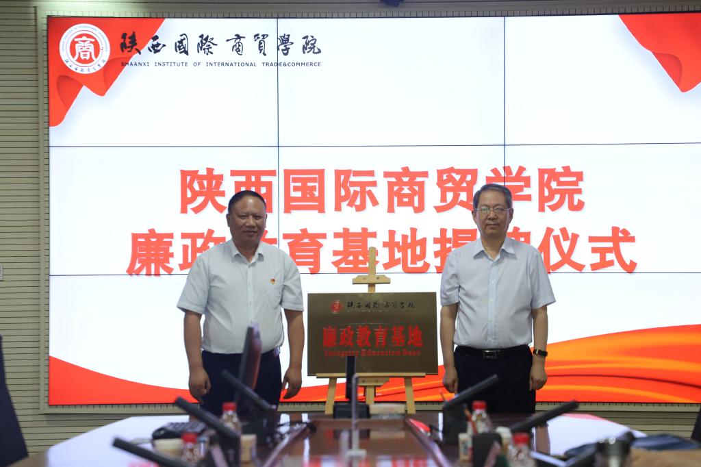 仪式上,贾明远与戚咸利共同为陕西国际商贸学院廉政教育基地揭牌。