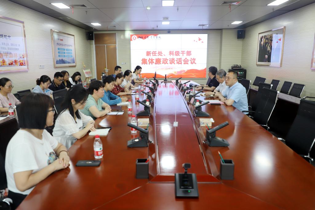 王文博在总结讲话中强调,廉政谈话是认真贯彻执行《中国共产党党内监督条例》的一项重要举措,是党风廉政教育的重要载体,是加强廉政风险防范、规范权力运行、有效预防腐败的一项常态化举措,既是学习勉励,更是警示教育。他希望,新任处、科级干部时刻保持头脑清醒、加强党性修养、严守纪律规矩,增强责任意识和廉洁自律意识,以优良党风政风带动校风教风学风,为学校持续健康高质量发展提供坚强政治保证。