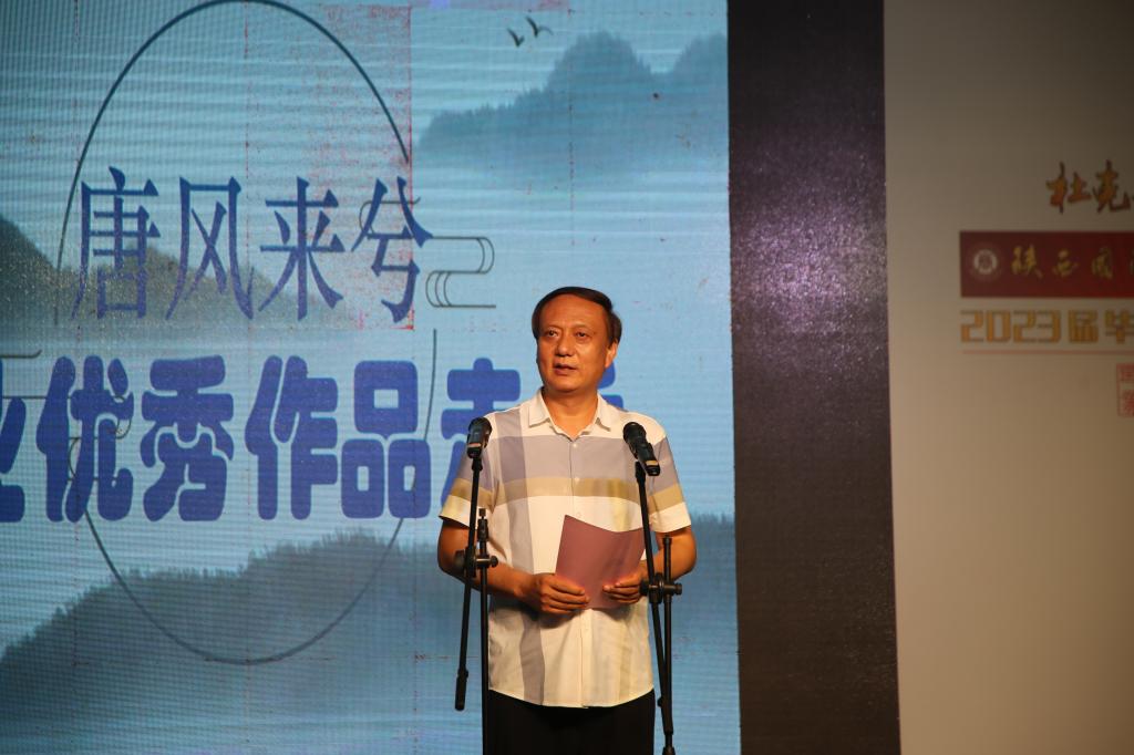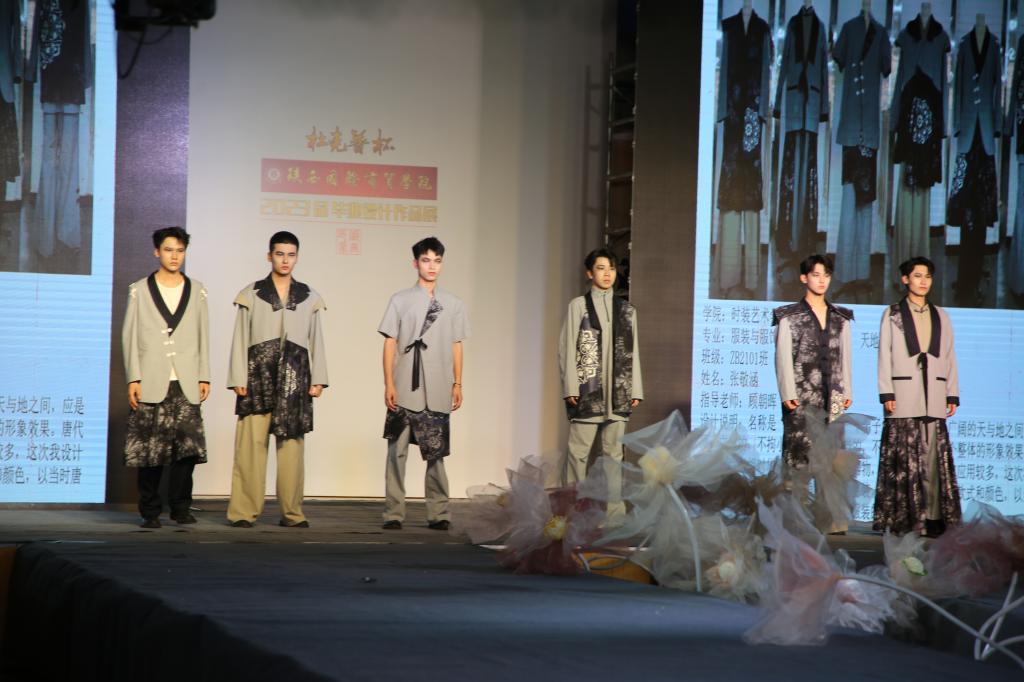 本网讯:初夏时分,凤凰花开,毕业季如期而至。6月30日晚,由陕西国际商贸学院主办,时装艺术学院、文学与教育学院、珠宝学院、高职学院、创新创业学院、教务处和陕西咸阳杜克普服装有限公司承办的“学习二十大,奋进新征程”2023届“杜克普杯”毕业设计作品动态展演大赛步长体育馆隆重上演。陕西国际商贸学院董事长赵超,全体校领导,陕西咸阳杜克普服装有限公司党委书记、董事长杨雯英,党委副书记、总经理谭雪峰和来自行业企业、兄弟高校、媒体嘉宾以及全校师生共同观展。