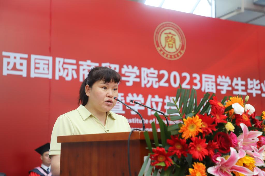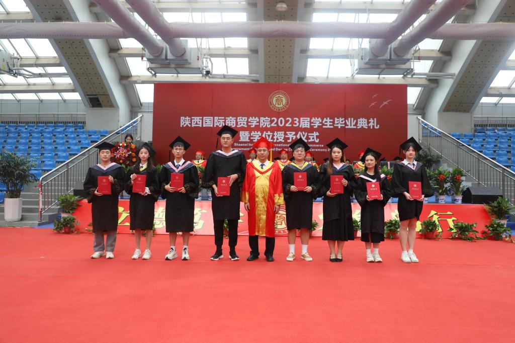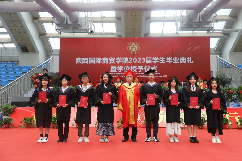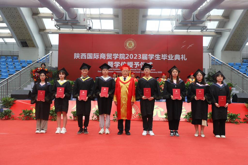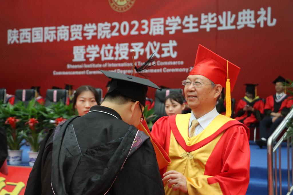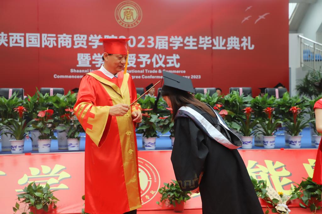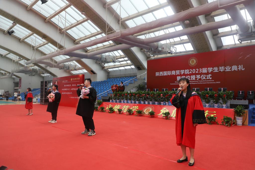 校长王正斌宣读《陕西国际商贸学院关于2023届学生毕(结)业情况的通报》和《陕西国际商贸学院授予2023届本科毕业生学士学位的决定》;党委书记康亚国宣读《陕西国际商贸学院关于表彰2023届优秀毕业生和优秀学生干部的决定》;常务副校长贾明远宣读《陕西国际商贸学院关于表彰2023届考取硕士研究生毕业生的决定》。