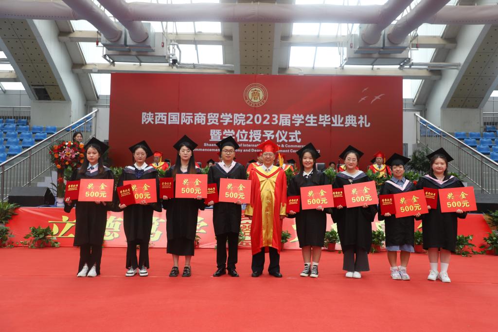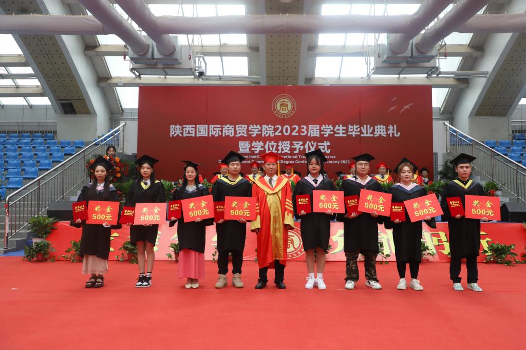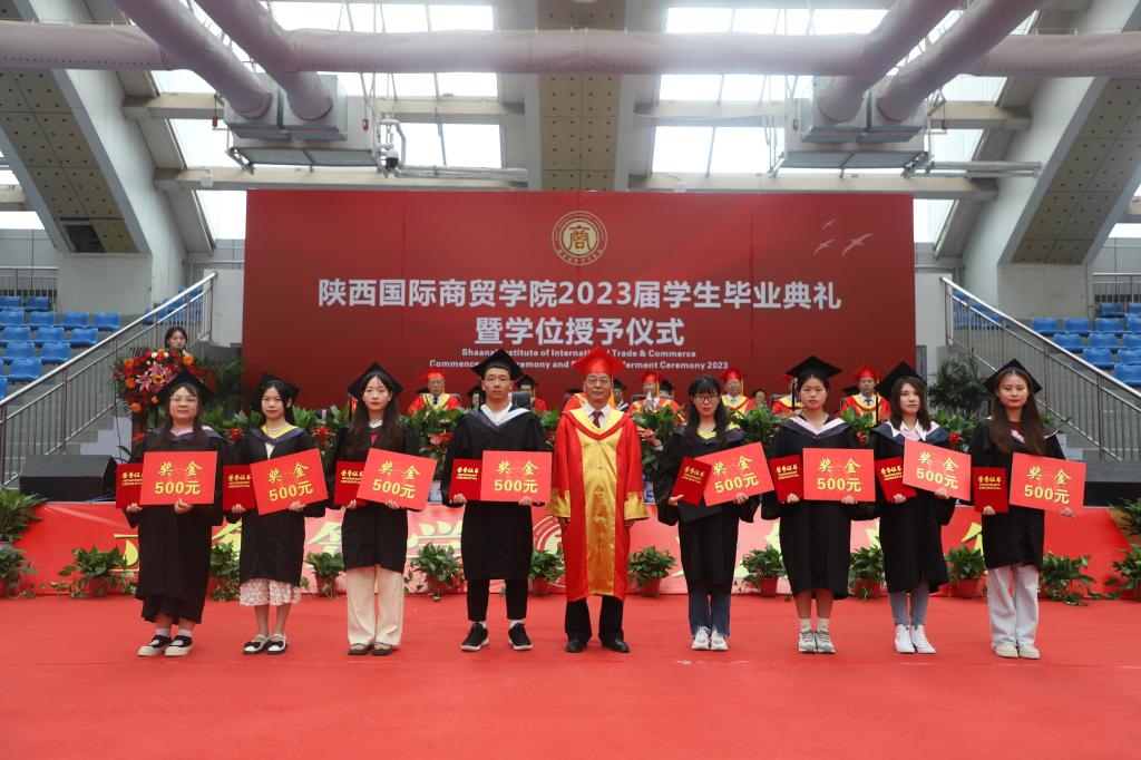 赵超颁发2023届考取硕士研究生毕业生奖金;王正斌、康亚国颁发2023届省级优秀毕业生荣誉证书;贾明远颁发2023届省级优秀学生干部荣誉证书;副校长甘世平、李吉友,校长助理王文博分别颁发2023届校级优秀毕业生荣誉证书,校长助理张利军颁发2023届校级优秀学生干部荣誉证书。