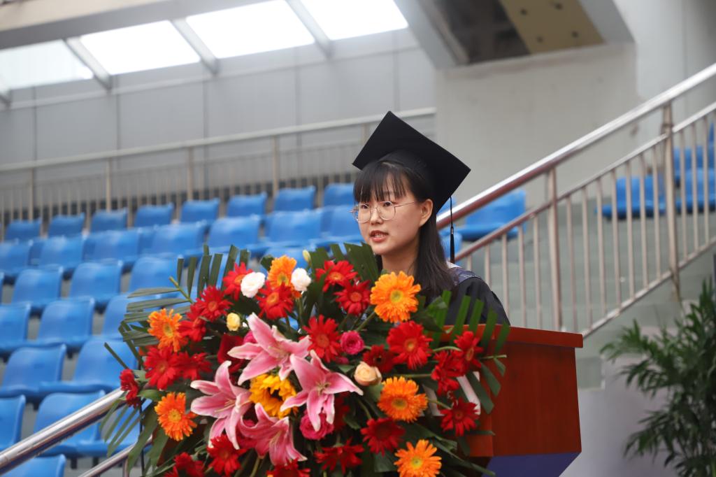 文学与教育学院李铎作为教师代表,医药学院中药学B1902郝晗作为学生代表,管理学院财务管理B1903班王羿卜家长作为学生家长代表共同祝愿毕业生们乘风破浪,奔赴未来,不负清风明月、不负理想远方,以奋斗之姿谱写青春赞歌,创造属于自己的辉煌!