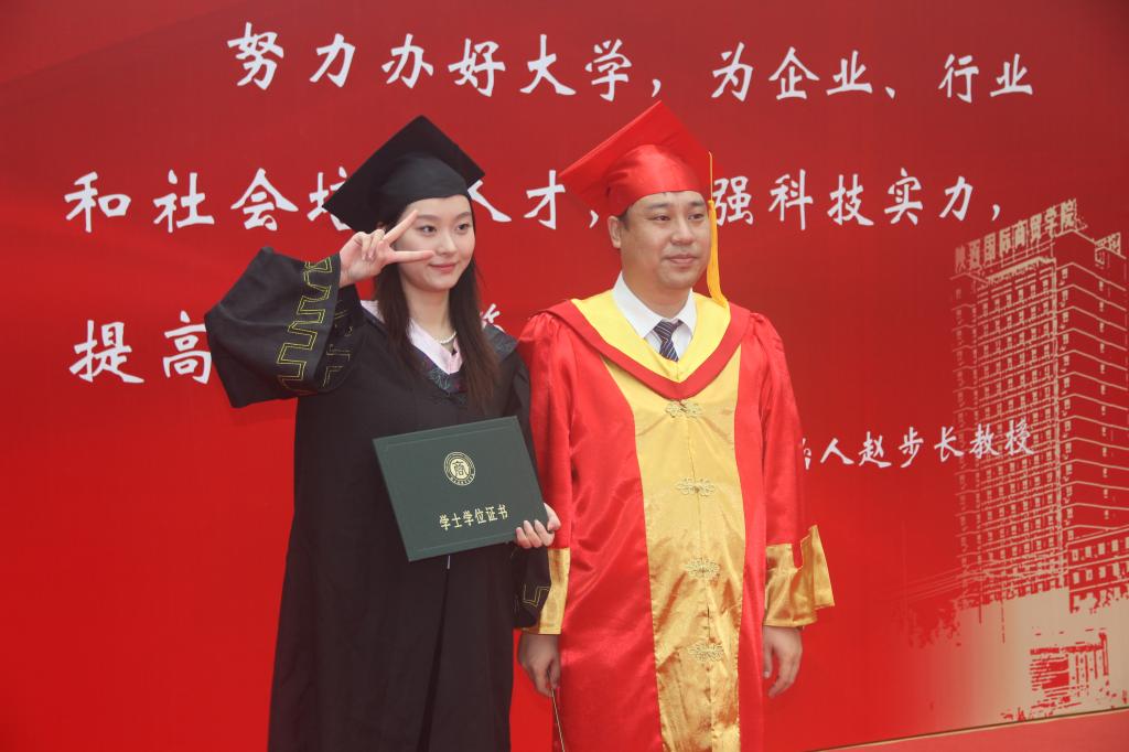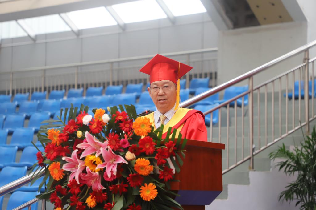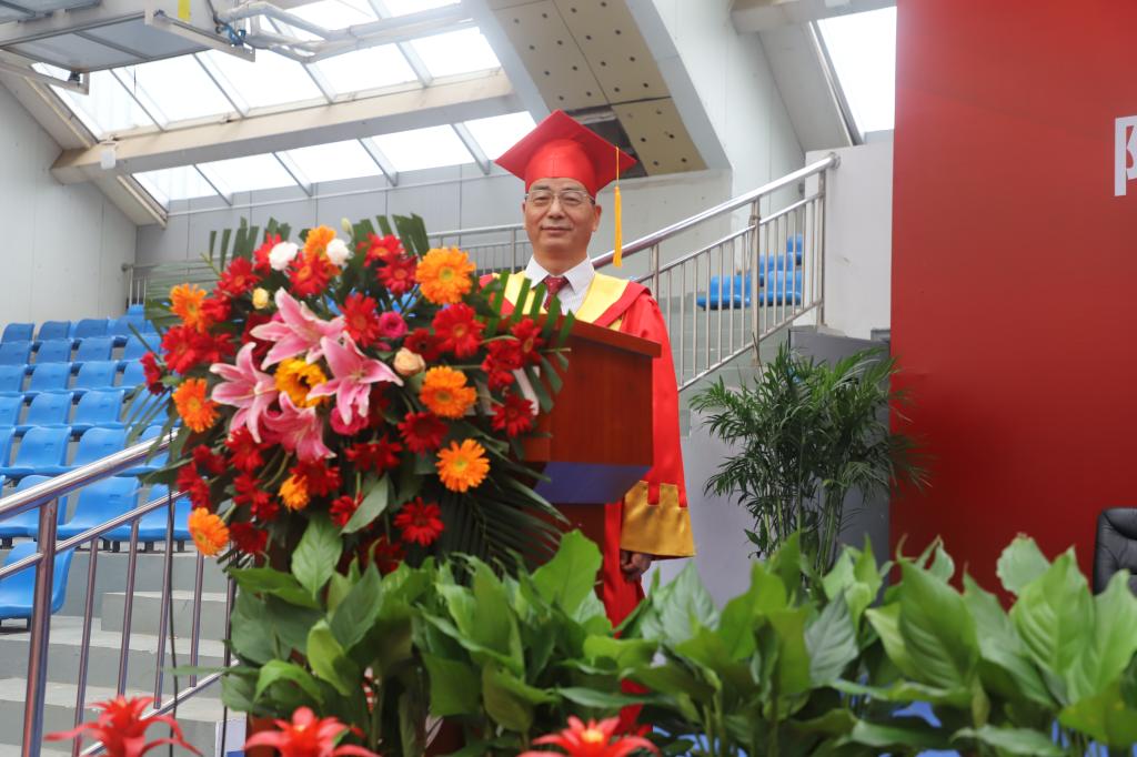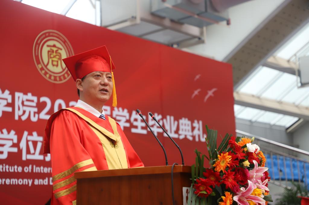 董事长赵超代表学校向毕业生送上诚挚的祝贺和美好的祝福。他在题为《身处开放的时代更要全力奔跑》的讲话中对广大毕业生提出殷殷期盼,愿你们全力奔跑,与时代同行,不做看客融入这个开放的时代,以开放精神点亮人生理想。赵超对广大毕业学子提出三点希望。一是身处开放的时代,要拥有创新的勇气。勇于打破思维定势,突破自身所处环境局限,乐于接受新思想,敢于接纳新事物,敢于选择有挑战性的事业,做不怕困难、不畏艰辛的创新者;二是身处开放的时代,要学会尊重包容。尊重每一个行业、尊重每一个阶层、尊重每一种声音、每一个阶层的人民,在包容开放中坚定文化自信,担当使命,奋发有为;三是身处开放的时代,要始终保持人生的方向感。坚守自身的道德标准和价值取向,不忘初心,牢记使命,敢于担当,勇于奋斗,让青春在奉献中焕发绚丽光彩,努力在各自领域展现商院风采、贡献商院力量。