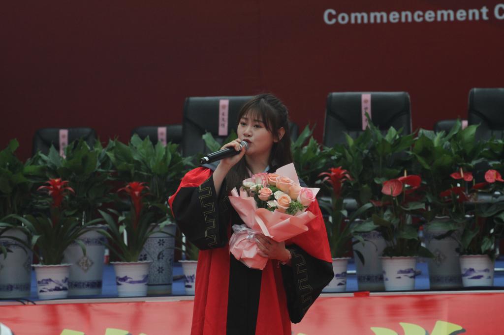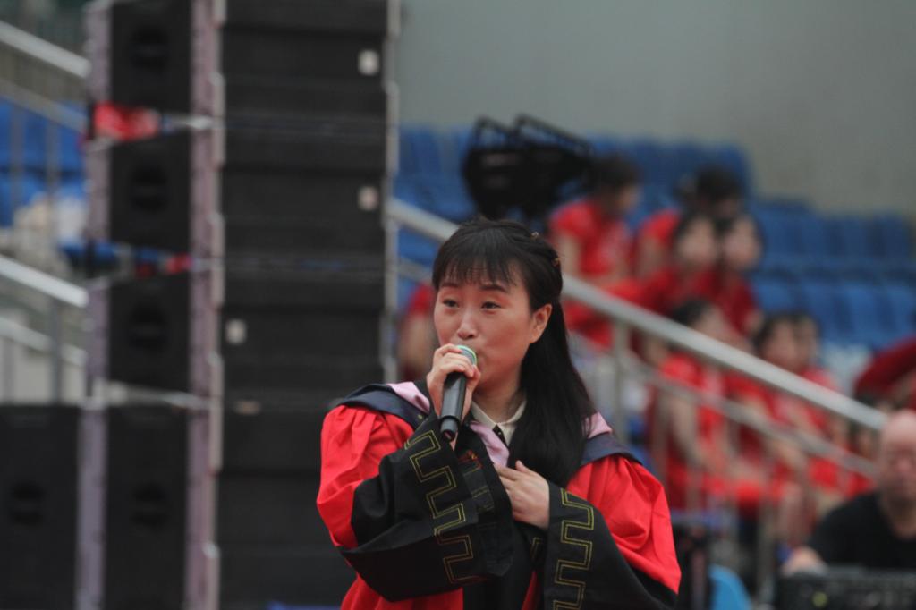 典礼现场,师生代表合唱了《启程》、《我的梦》、《一路顺风》等歌曲,表达心中的惜别之情。上午8点30分,伴随着雄壮的国歌声,毕业典礼正式拉开帷幕。