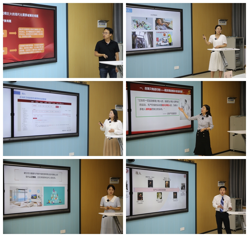 经过各教学单位选拔、校级初赛两个环节遴选出的39位教师分别进行了15分钟的现场教学展示。课程思政参赛教师根据各自学科专业特点及所授课程内容,深入挖掘其中的思政元素,并恰如其分地融入到专业知识讲授中,以精心的教学设计、典型案例的分析、深入浅出的讲解、多样的教学形式,充分展现了我校教师扎实的教学基本功和良好的课程思政教学水平。思政课教师采用信息化教学方法,运用各具特色的教学模式,将政治性和学理性相融合,展示了出色的思政课教学水平,给评委和观摩教师留下了深刻印象。