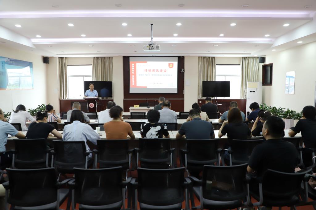 王正斌以《深入学习贯彻习近平新时代中国特色社会主义思想主题教育,加快高水平师资队伍建设,加强教师师德师风养成》为题,从“认真学习,深刻领会习近平总书记关于教师队伍和师德师风建设的重要论述”“我校在师资队伍建设和师德师风建设中存在的问题和短板”和“重点推进,系统突破,补齐学校师资队伍建设的短板”三方面对学校加强师德师风建设进行了系统阐述,提供了有益指导。