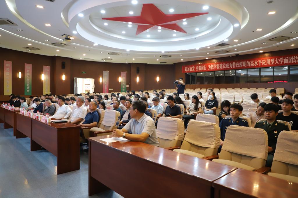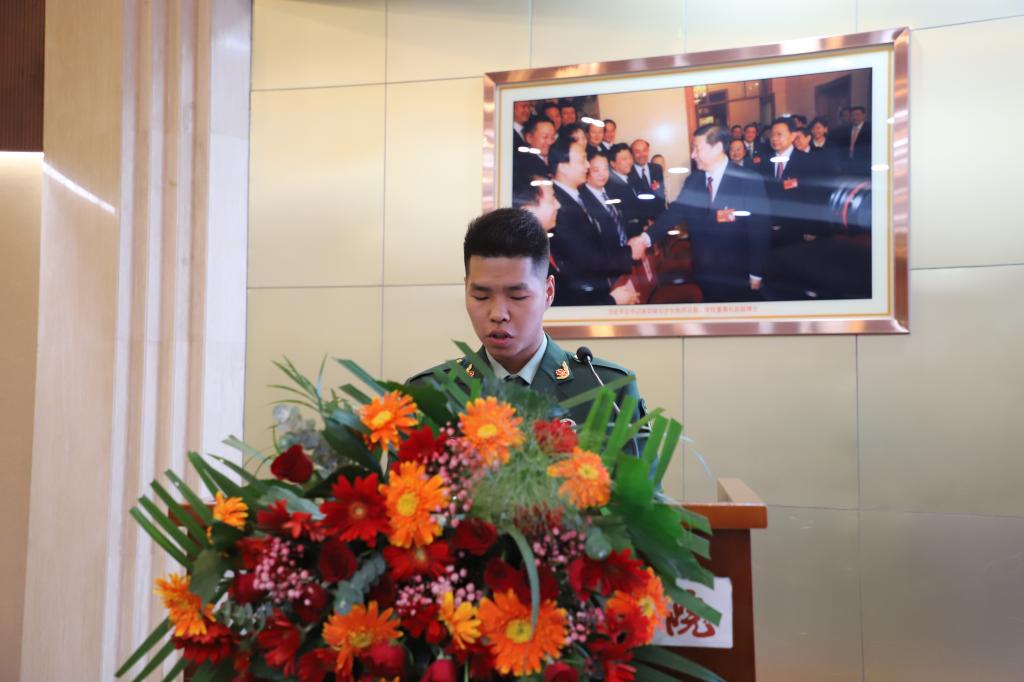 参训学员薛康康代表退役士兵发言,表示非常感谢党和政府给予的培训机会,同时对我校教学水平,服务保障等方面感到非常满意,希望通过培训掌握一技之长,感受大学文化,提升个人素养,为社会做出一份贡献。