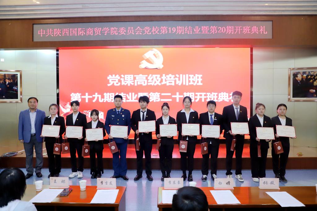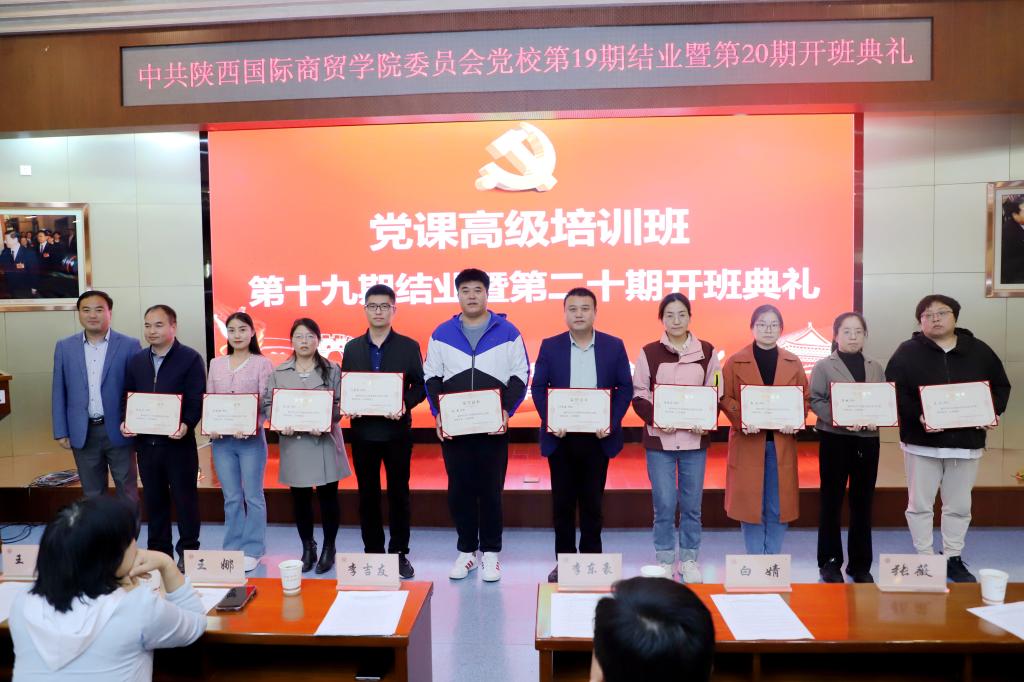 会议宣读了《中共陕西国际商贸学院委员会党校关于准予第19期高级培训班结业的决定》。党委副书记、副校长李吉友为2023年党务工作优秀指导老师、第19期高级培训班优秀学员颁发了荣誉证书。