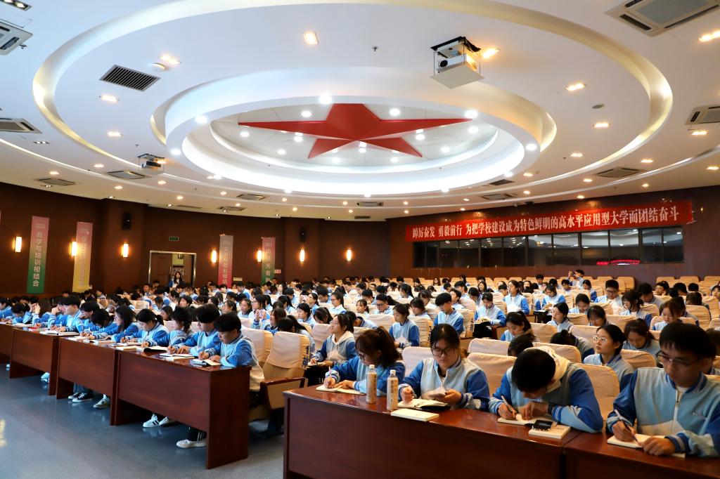 本网讯:10月9日下午,我校在学术报告厅二楼举行党校第19期党课高级培训班结业暨第20期党课高级培训班开班典礼,党委副书记、副校长李吉友、党委工作部负责人、各二级学院党总支(副)书记、授课教师代表、第20期高级培训班全体学员参加了典礼,典礼由党委工作部负责人主持。