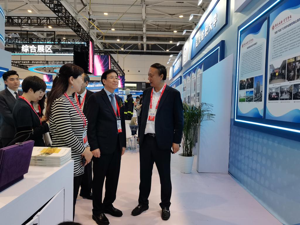 中国高等教育副会长、天津大学原党委书记李家俊参观学校展位