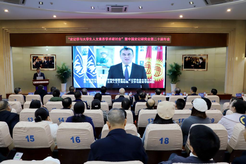 本网讯:全国史记学与大学生人文素养学术研讨会暨中国史记研究会第二十届年会2023年11月11日在陕西国际商贸学院隆重召开。本次年会由中国史记研究会、陕西国际商贸学院主办,陕西国际商贸学院文学与教育学院承办,西北大学中国思想文化研究所、泰国格乐大学、新加坡南洋管理学院、吉尔吉斯国立大学、国际商学研究院、中吉史记学文化中心、中吉中医药中心、中国传统文化促进会国际交流委员会以及中国史记学网等协办。来自全国各地专家学者和大学生代表百余人参加了此次年会。会场展示了张大可、丁德科和王华宝、张学成、朱卉平、闫伟等司马迁与史记研究学者,郭瑶洁、周成子、郭晶、李潇瑾等研究生、大学生的论文摘要。