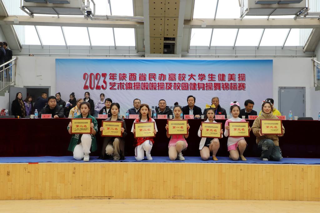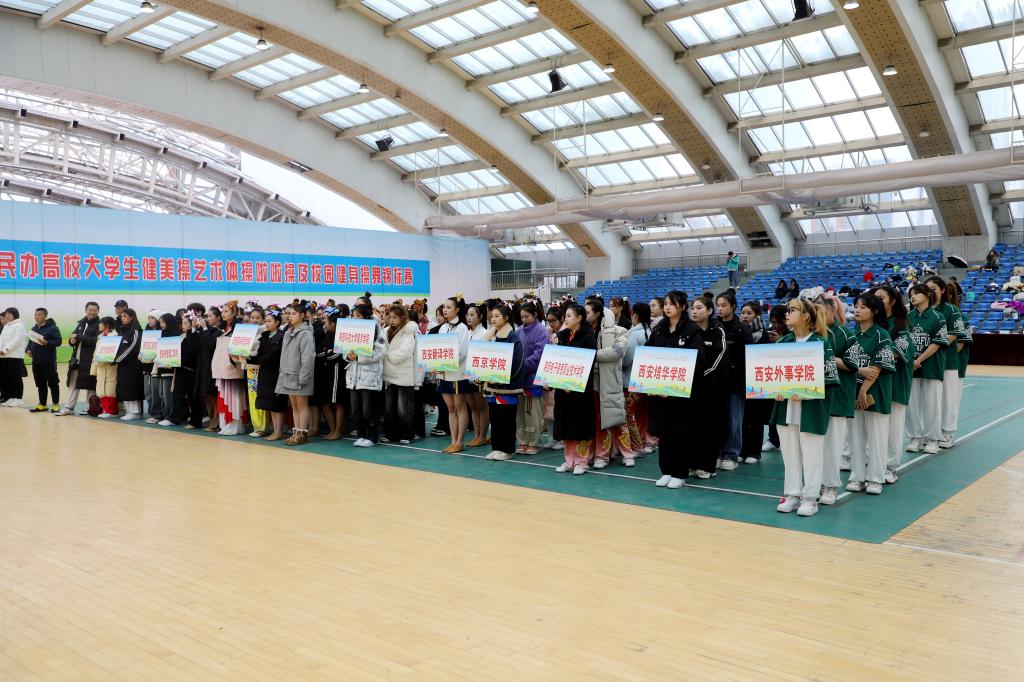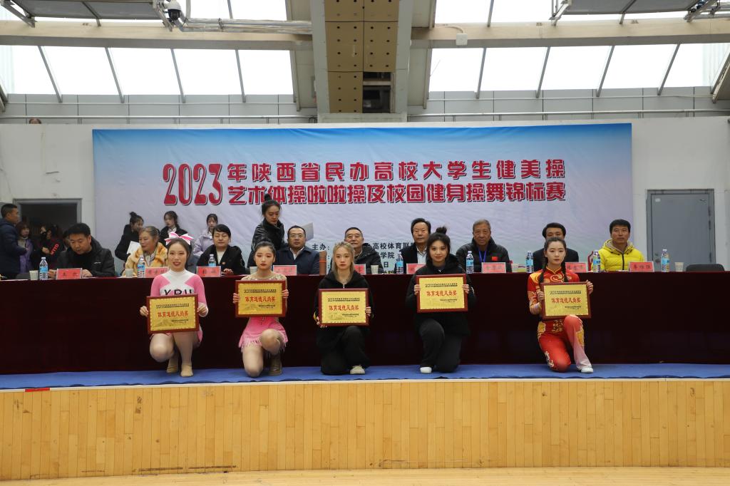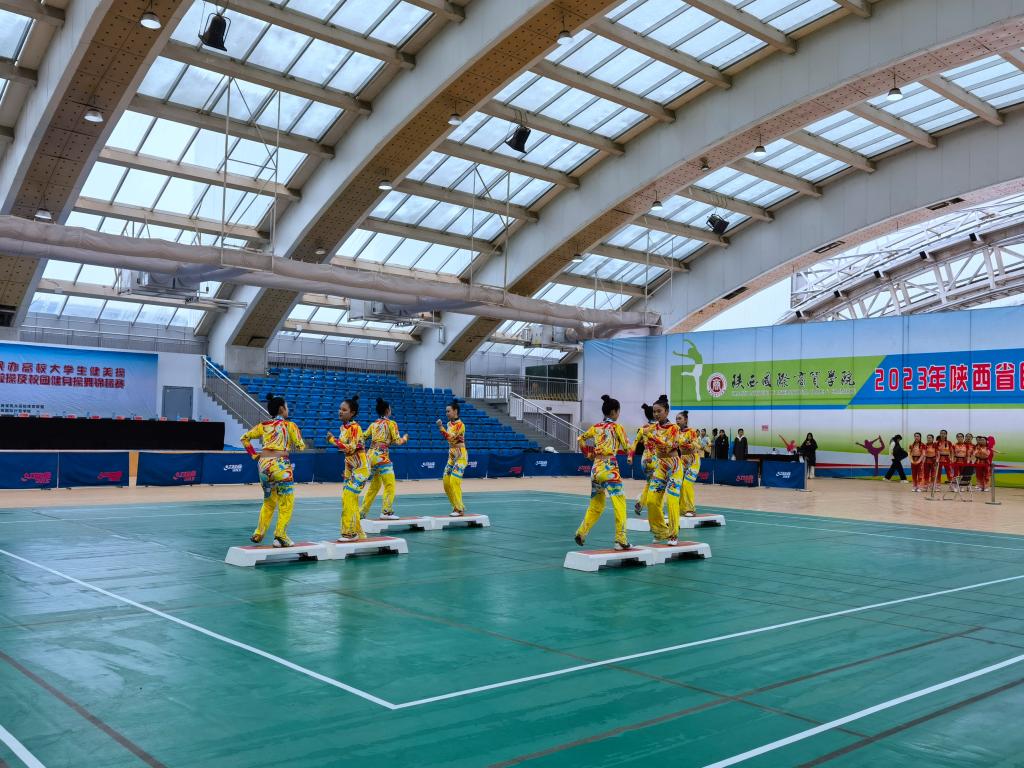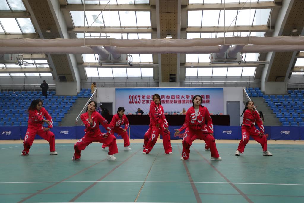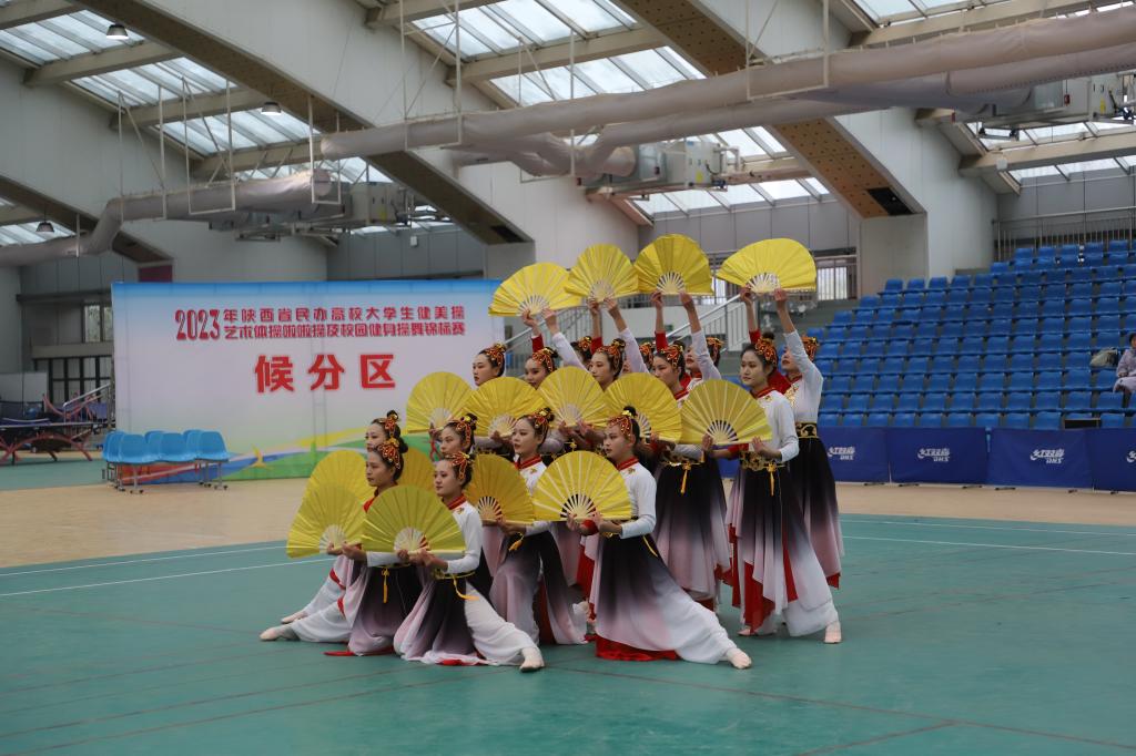 本网讯:由陕西省民办高校体育联盟主办、陕西国际商贸学院承办的2023年陕西省民办高校大学生健美操、艺术体操、啦啦操及校园健身操舞锦标赛于11月11日在陕西国际商贸学院步长体育馆隆重举行,共有来自全省10所民办高校的117名运动员参加本次比赛。